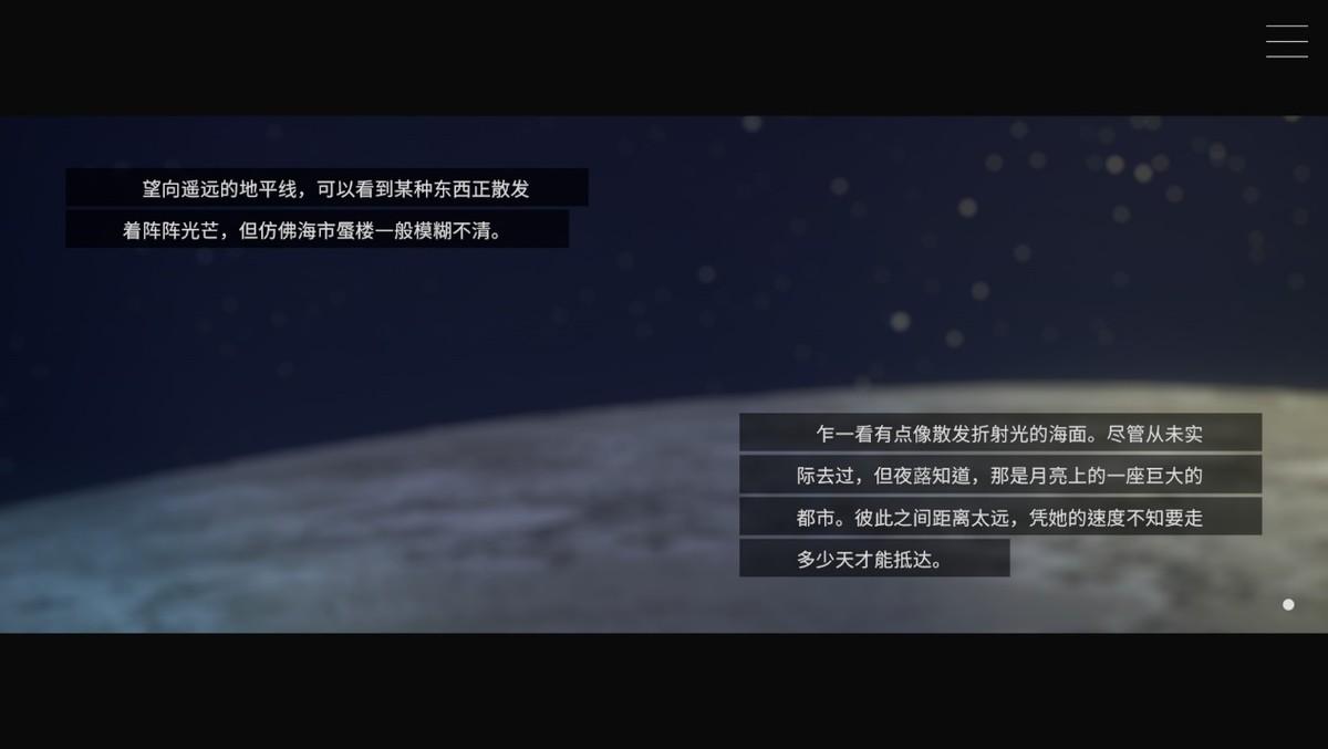 《Moonless Moon》并没有一个强烈清晰的主题,玩家只是跟着夜蕗的脚步探索三个不同的世界,以她的视角看她经历的事情。