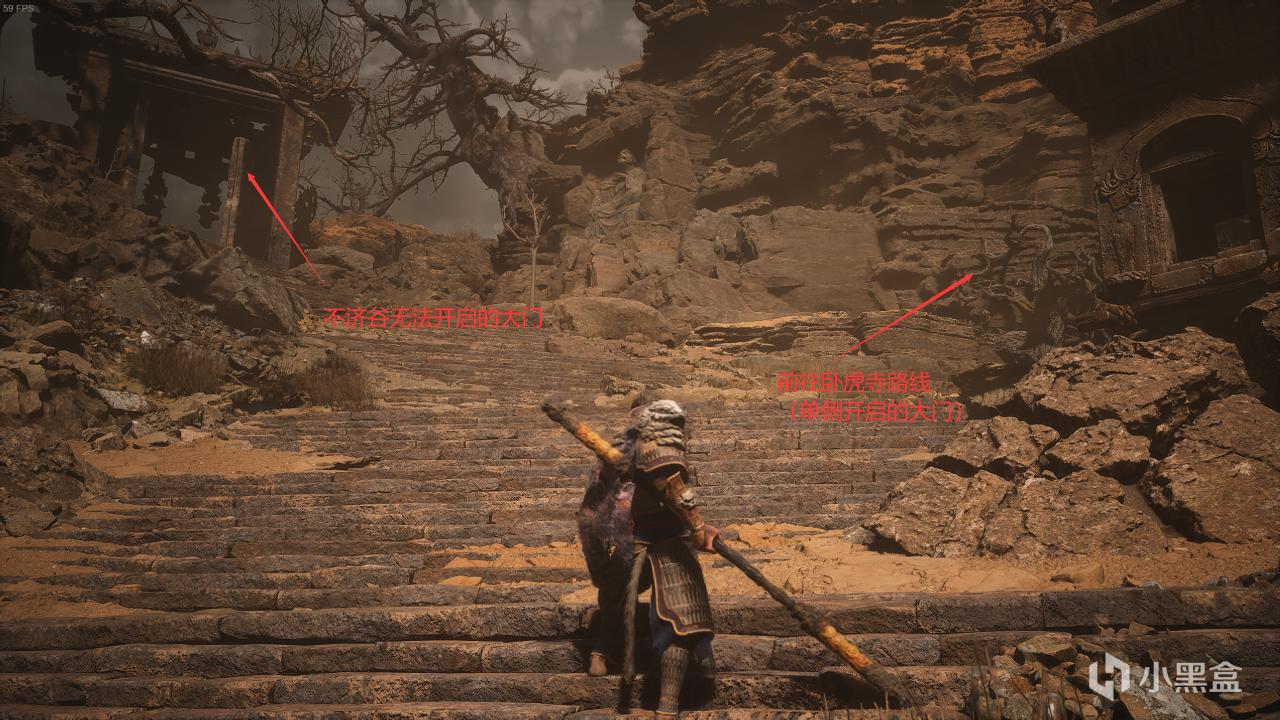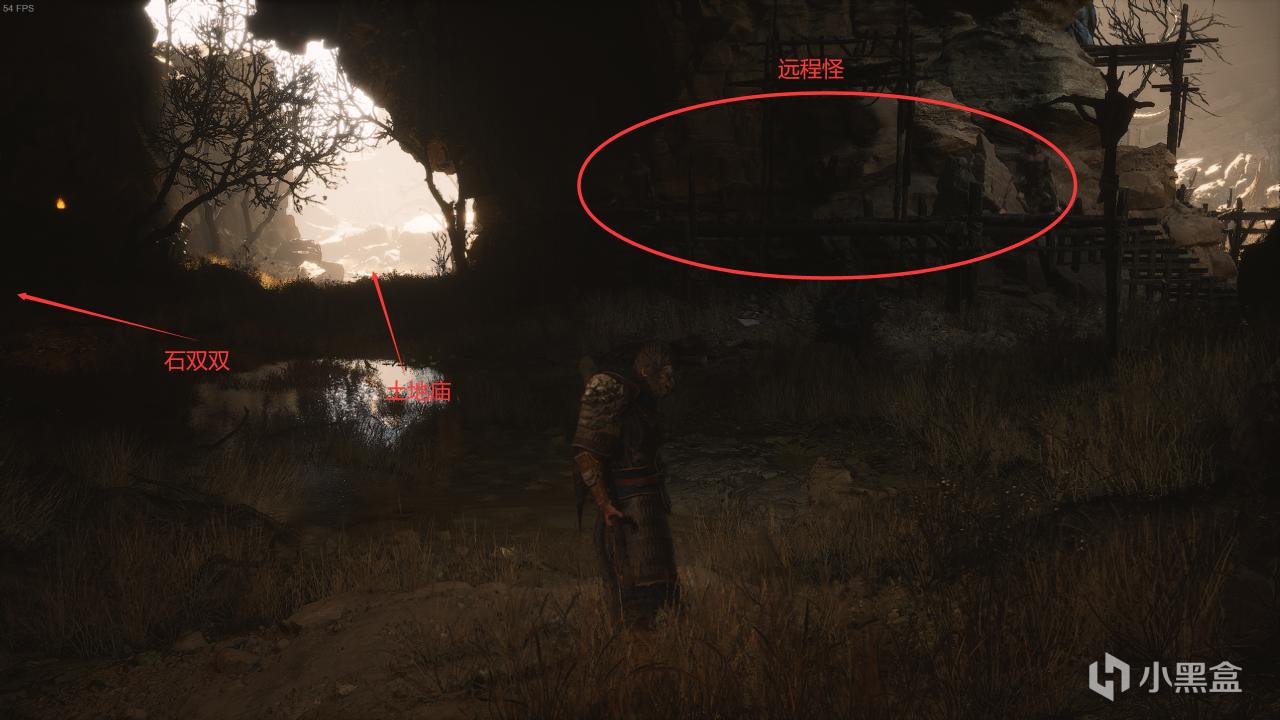 繼續向前會來到之前挾魂崖石先鋒石敢當BOSS戰區域。如果當初選擇臥虎寺路線,最終就會走到這裏,直接觸發石先鋒BOSS戰,錯過隱藏BOSS石敢當。所以我們選擇了先走挾魂崖路線。