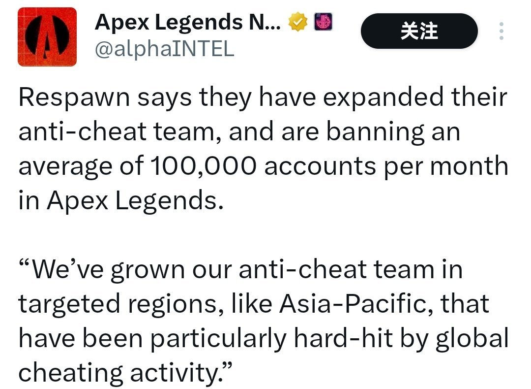 Respawn表示,他们已经扩大了他们的反作弊团队,并每月在Apex Legends中平均封禁10万个帐户。