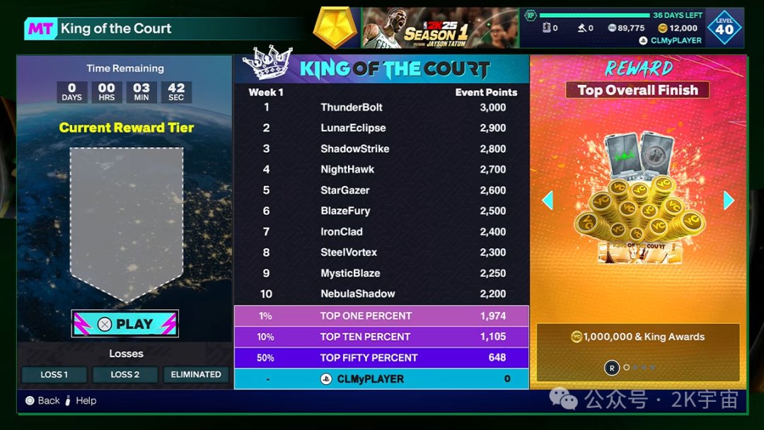 互相匹配按照相同等级,每周赢得一定的目标即可获得资格参加新活动“球场之王”