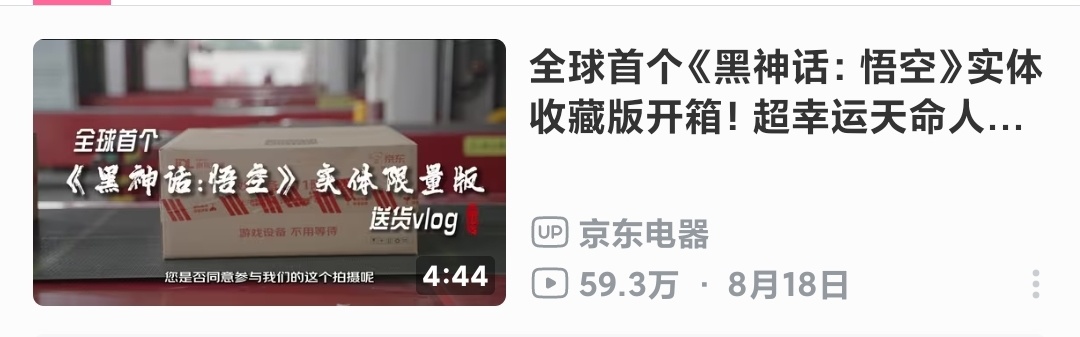 黑神话8月20日正式发售,而早前预订的实体豪华版和典藏版已经开始了发售。京东也蹭了一下热度来了一个首发开箱典藏版活动,看着收货人难以言喻的喜悦之情,就连观众都会确实高兴。
