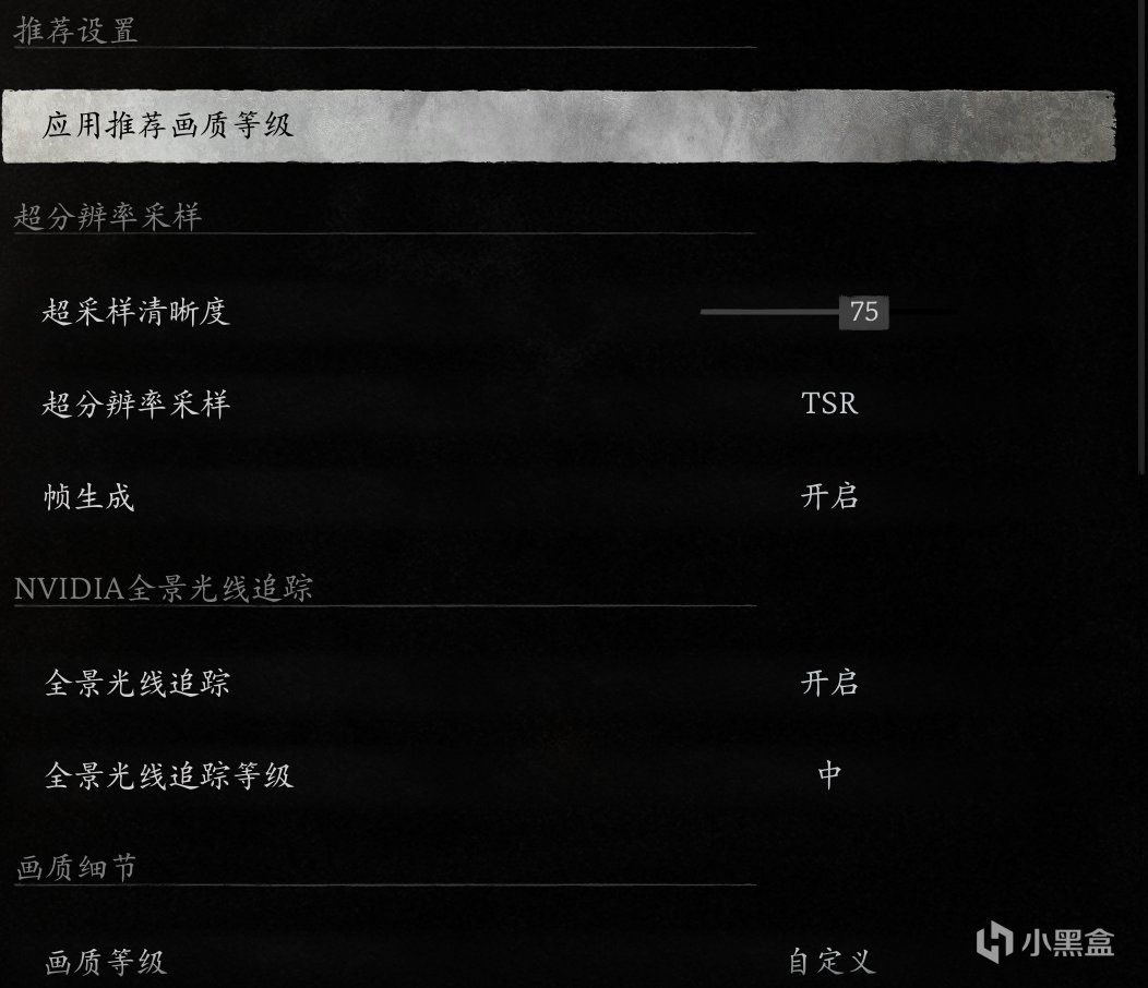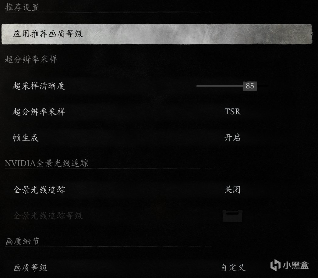 其他配置玩家若是按照上述調整後幀數還是較低,可嘗試將光追調至低,然後其他設置沿用“基礎畫質優化方案(光追關)”的調節。