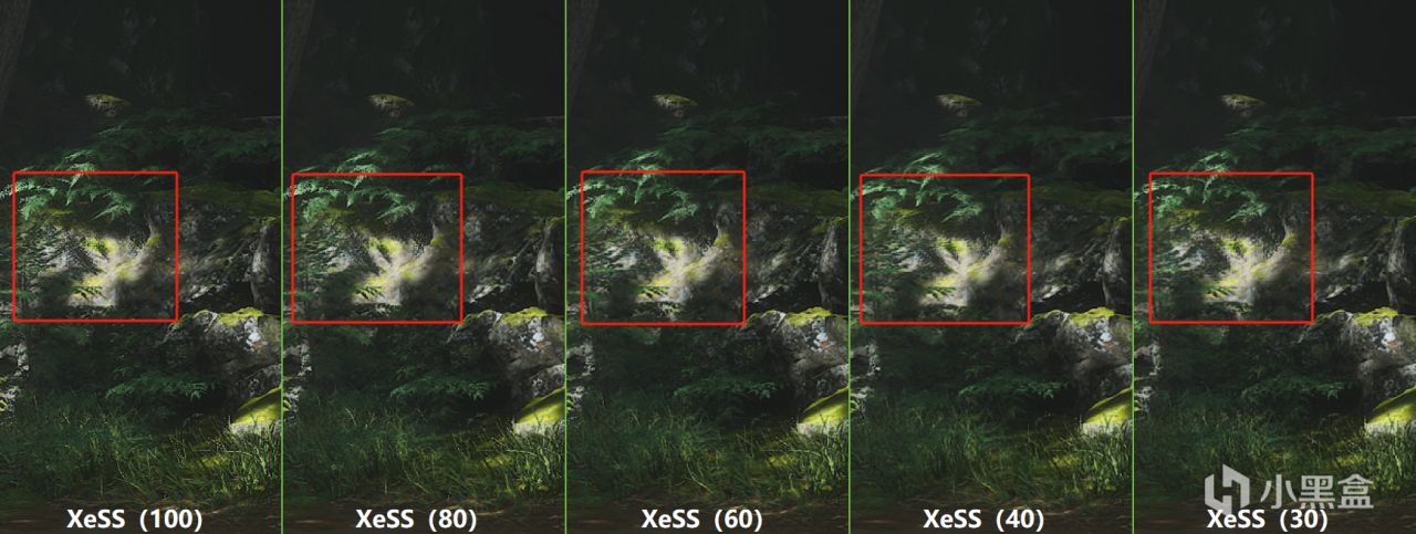 XeSS的效果並不出色,即便是XeSS(100)的情況下,也能非常明顯的看出有種帶有馬賽克般的畫面感。