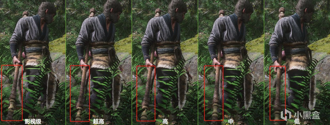 抗鋸齒越低,悟空的金箍棒以及毛髮鋸齒越明顯。但需要說明的是,抗鋸齒對靜態的模型材質如石頭、石壁等影響微乎其微。該選項最少可開到中。