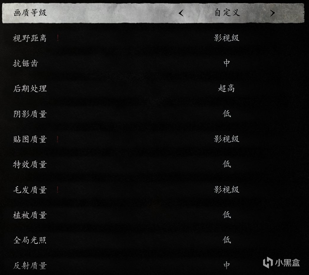 爲達到減少視覺壓力的目的,該優化方案的核心在於將“陰影質量”、“植被質量”、“全局光照”三項調至最低,以獲得最直觀的畫面觀感效果,極大程度地減少了體驗壓力。