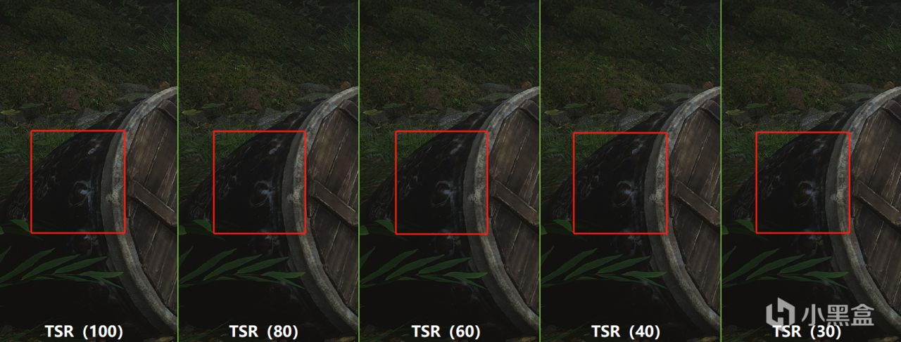 TSR在畫面表現力尚可,數值越低,則會稍微影響一些物體表面細節。