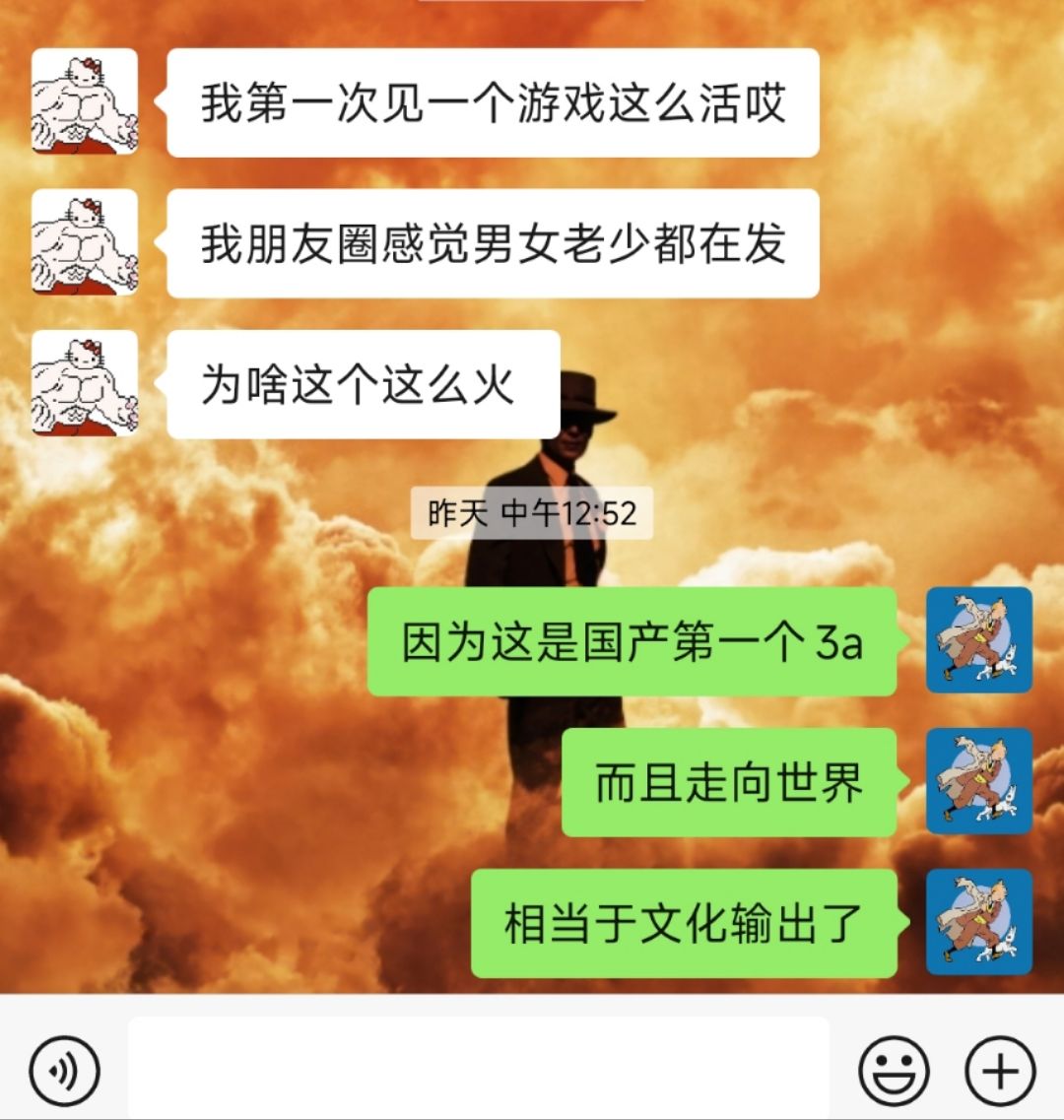 《黑神話》發售那天,我一股腦的玩了十五個小時,這一天註定是不平凡的。經常玩盜版的朋友突然向我曬了遊戲的購買截圖,平日一言不發的醫院老師問起我黑神話的消息,隔壁老姐對一款遊戲的爆火滿腹狐疑,STEAM的好友也是肩並着肩在羣裏聊起打法思路。