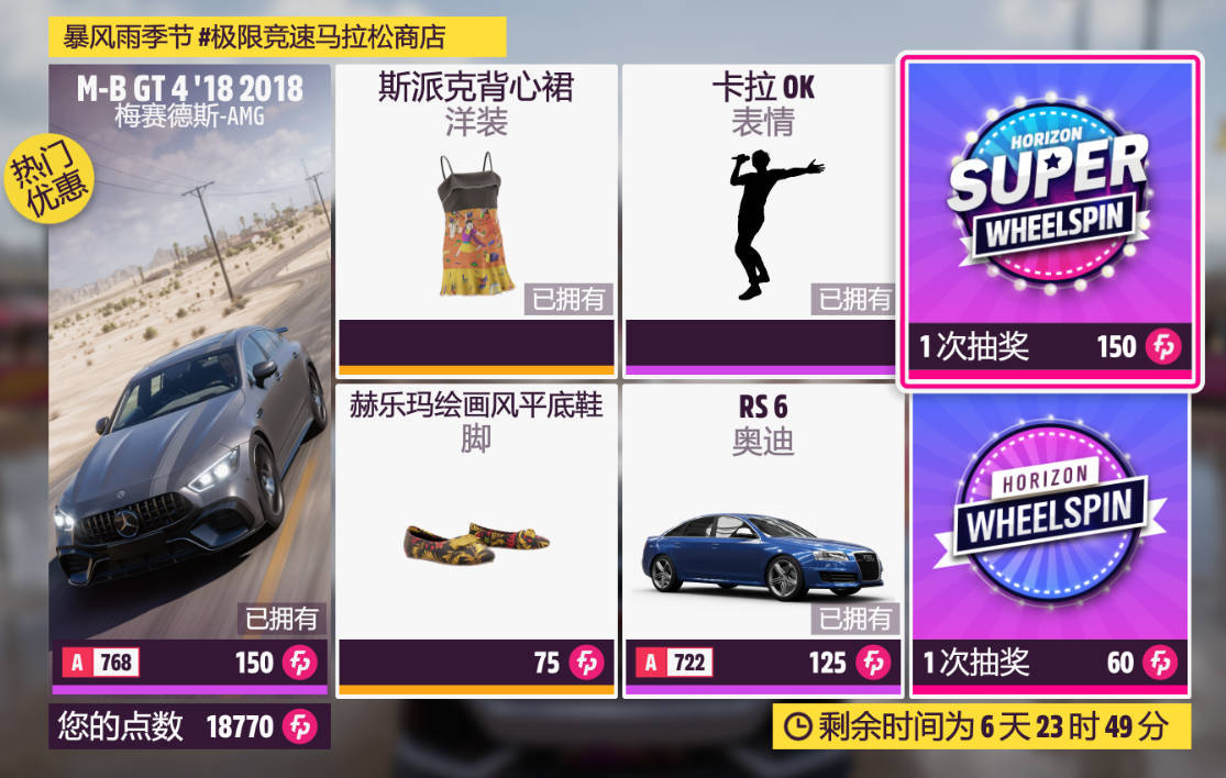 本周更新车辆为2018款梅赛德斯-AMG GT 4-DOOR COUPE和2009款奥迪 RS6。两辆车都是车展车,不建议兑换!