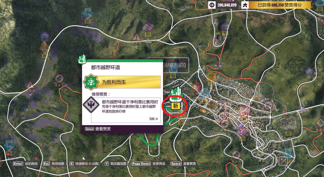 在瓜纳华托都市越野环道处破坏6个道具,位置如图,完成奖励为冰淇淋车汽车喇叭