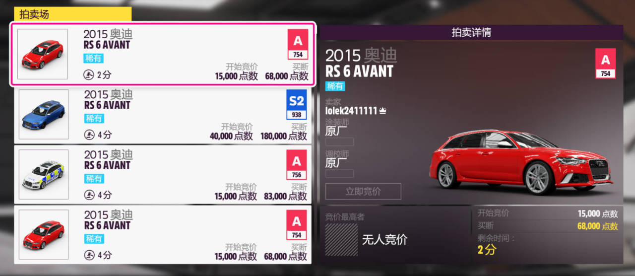 奖励车辆为:2015款奥迪 RS6 AVANT