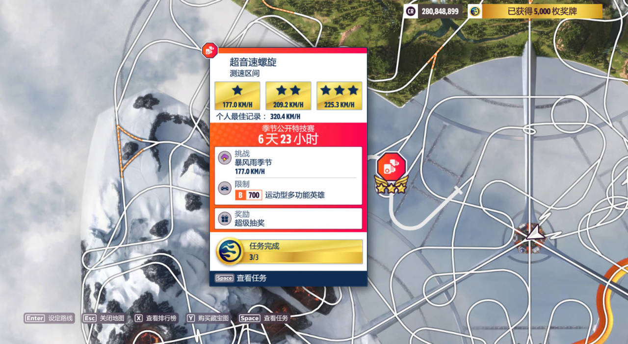 测速区间:环道,完成奖励为超级抽奖。(建议从左往右出发,末段有较长直道方便提速)