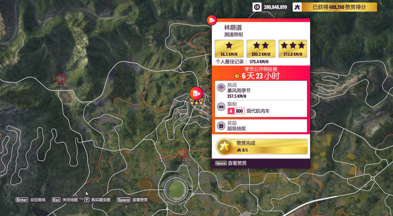 测速照相:林荫道,完成奖励为超级抽奖。(建议从下往上进,有一段较长的加速距离)