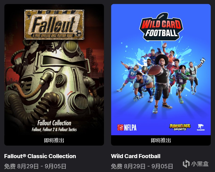 下一週贈送的免費遊戲爲《輻射經典合集》和《野卡橄欖球》,領取時間8月29日~9月5日