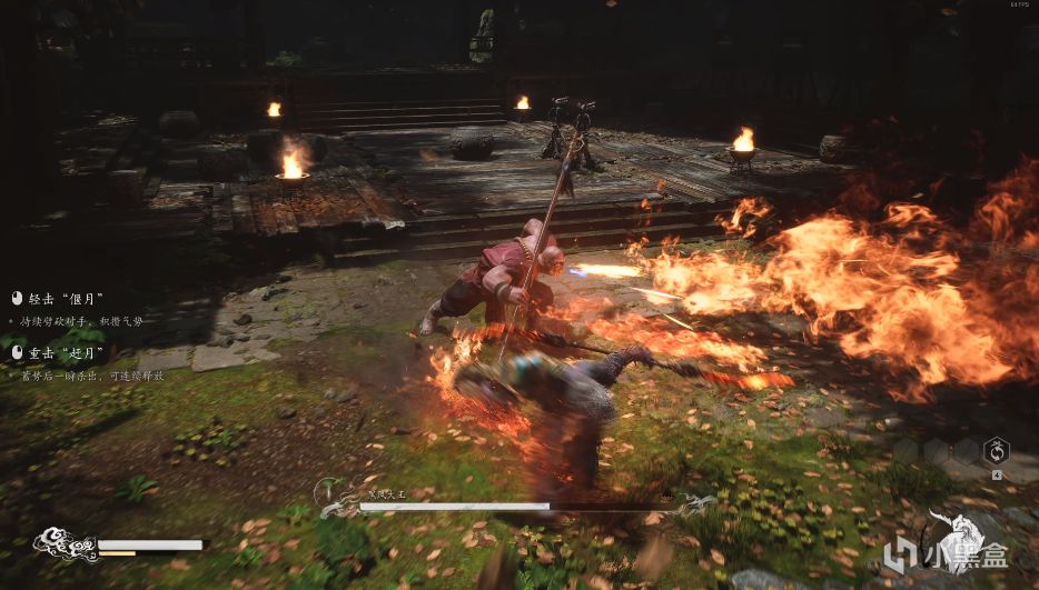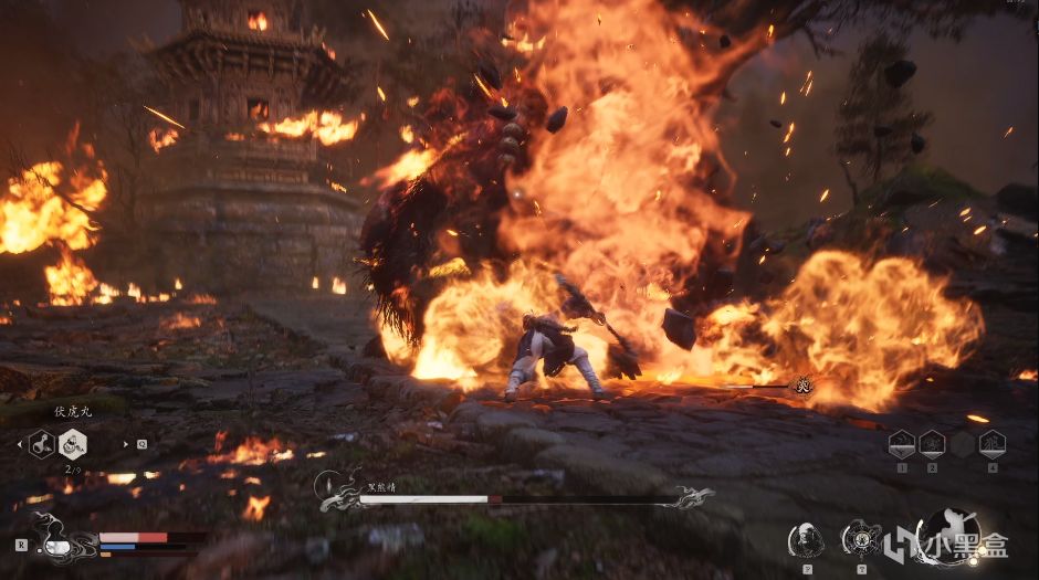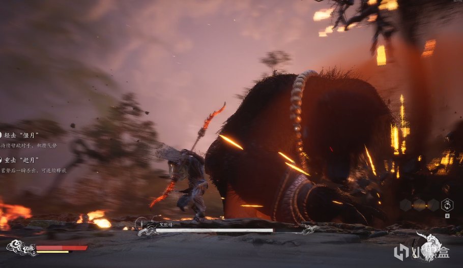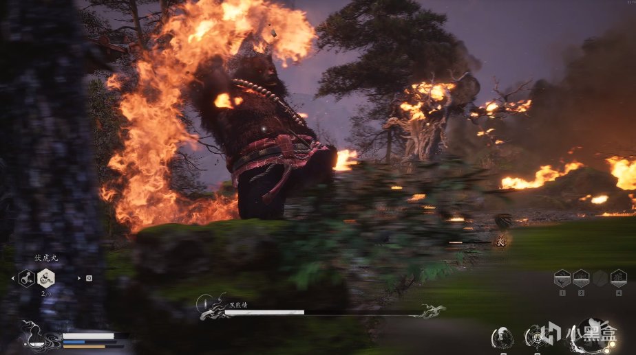 火焰附體強化:在上述所有技能的基礎上添加火焰傷害,威力更爲巨大。帶着火風的拳頭,帶着火焰的拍砸,此時的天命人不能戀戰,需用利用變身技能以及定身術、二段棍法打斷其攻勢,儘快解決掉黑熊精。
