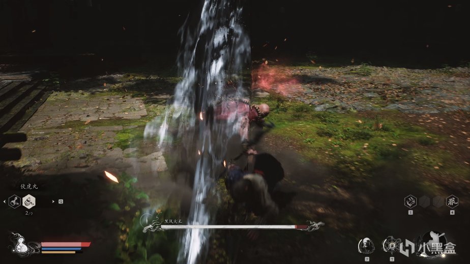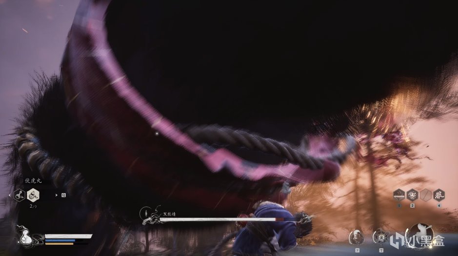 強化版化形黑風:核心技能,依舊散形化爲黑風衝襲角色,強化後的黑風出招速度毫無痕跡,角色非常容易中標,建議不斷翻滾或化身廣智,減少主體被攻擊的次數。