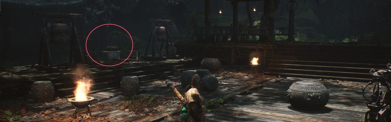 翠竹林-白雾泽:道具落伽香藤,土地庙对面树上,增加酒葫芦的使用次数。