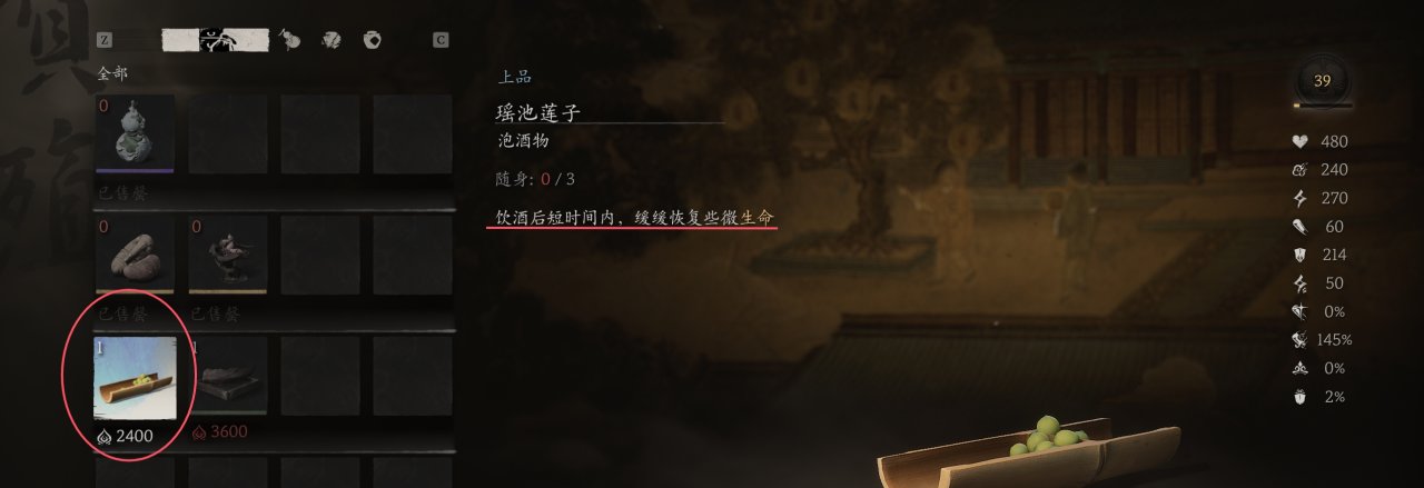翠竹林-白雾泽:泡酒物瑶池莲子,刚才的位置继续往前走,在申猴处就可以用落伽香藤升级酒葫芦了。还可以购买瑶池莲子,效果不错,使用酒葫芦后还能额外回血。