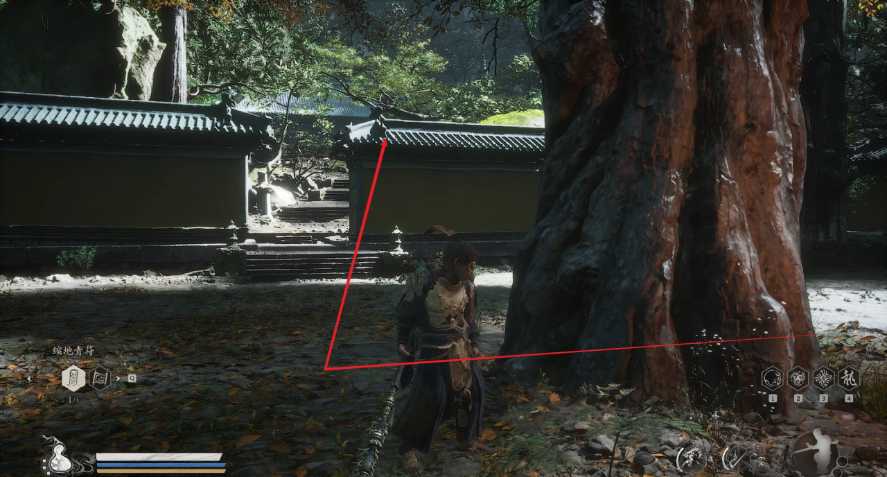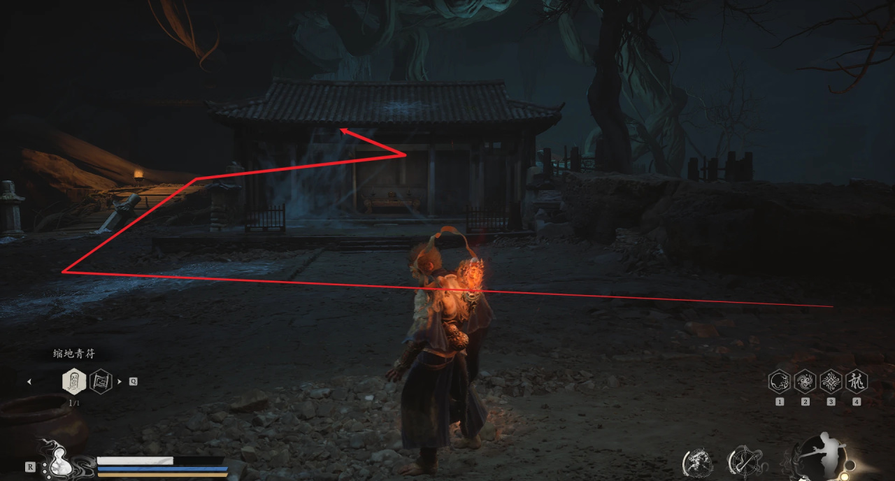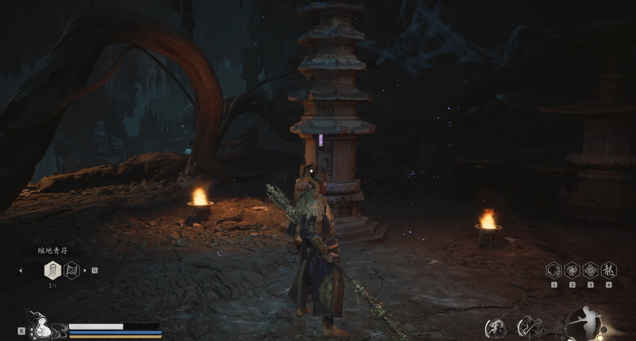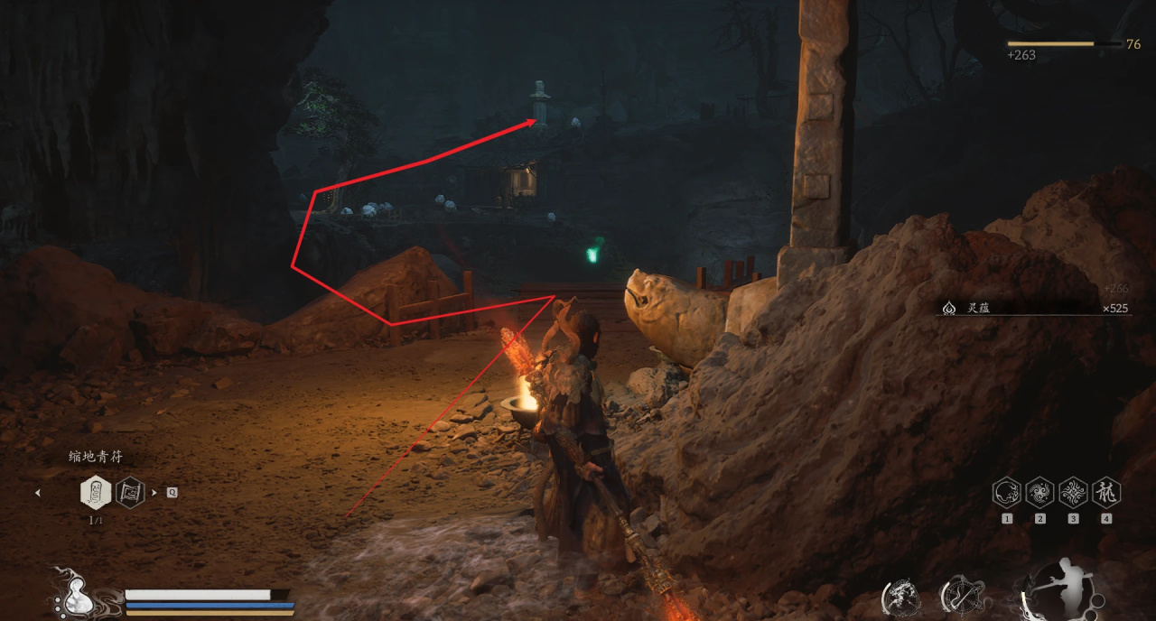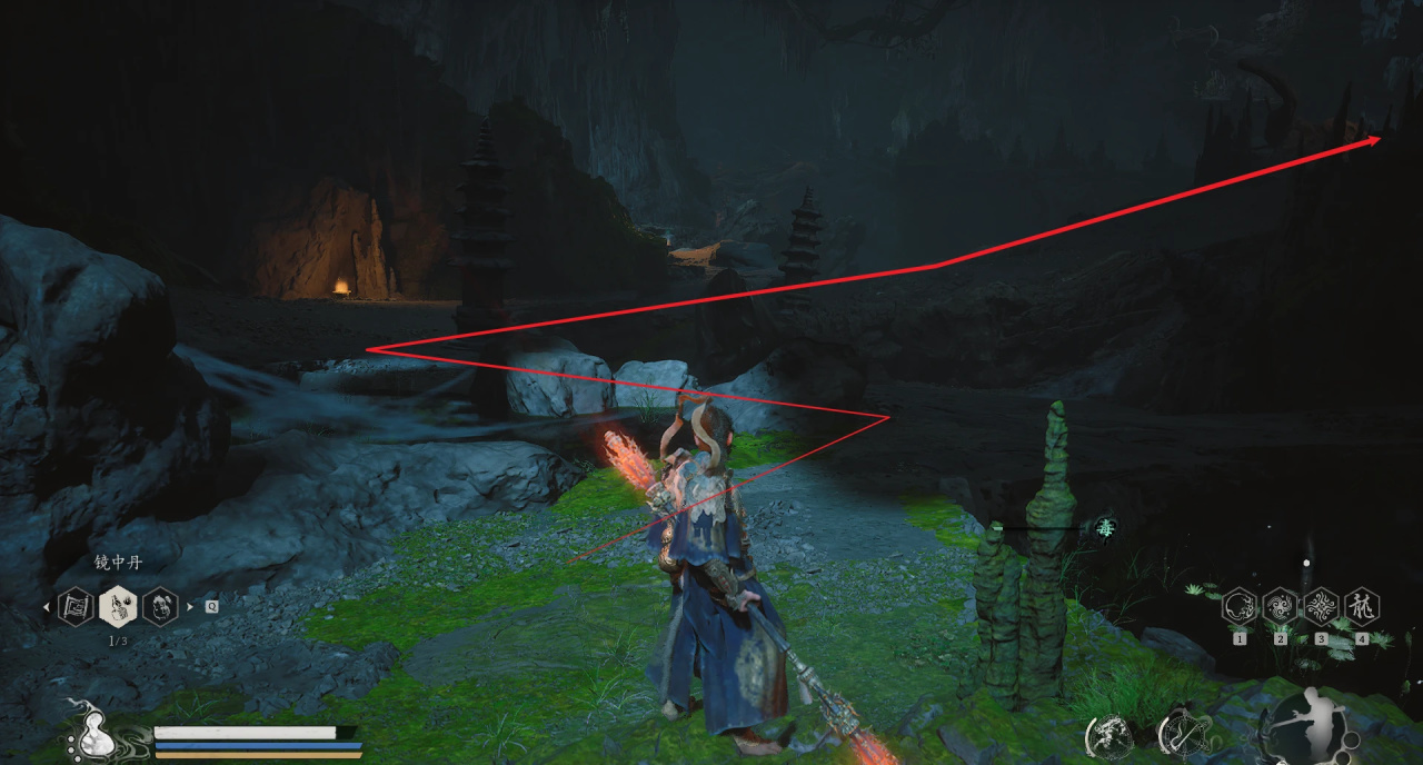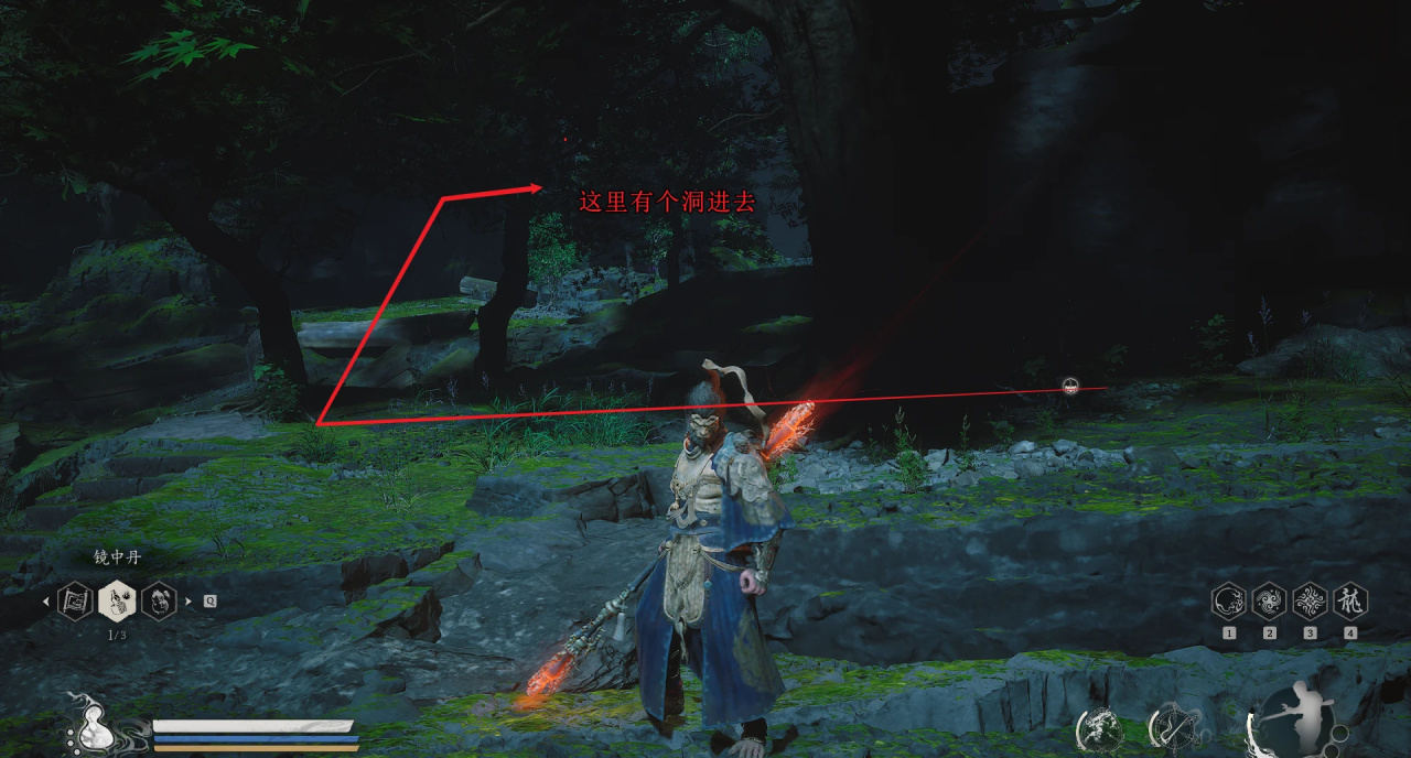 然后我们传送到「盘丝洞—绝想崖」背后就能看见第二张符