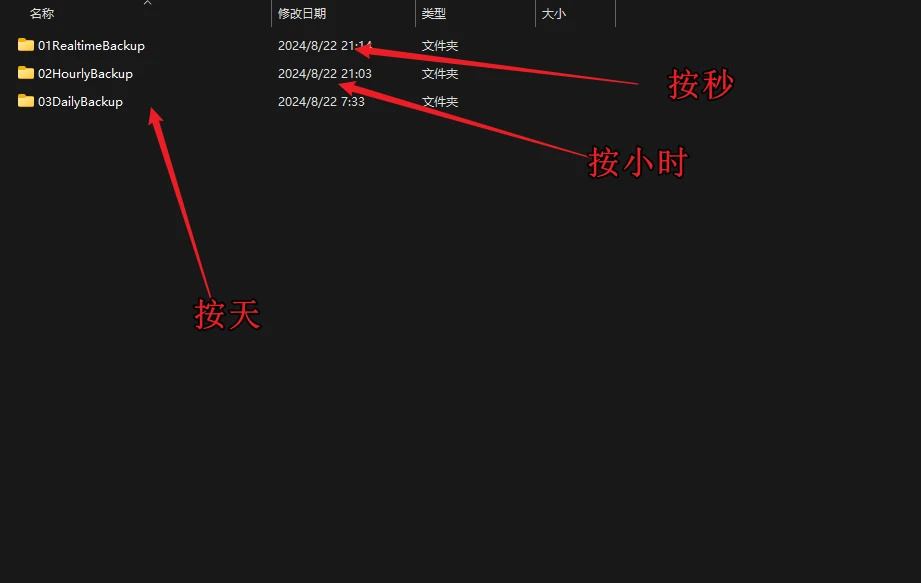 选择你需要的存档:1按秒自动存的、2按小时存档、3按天存档