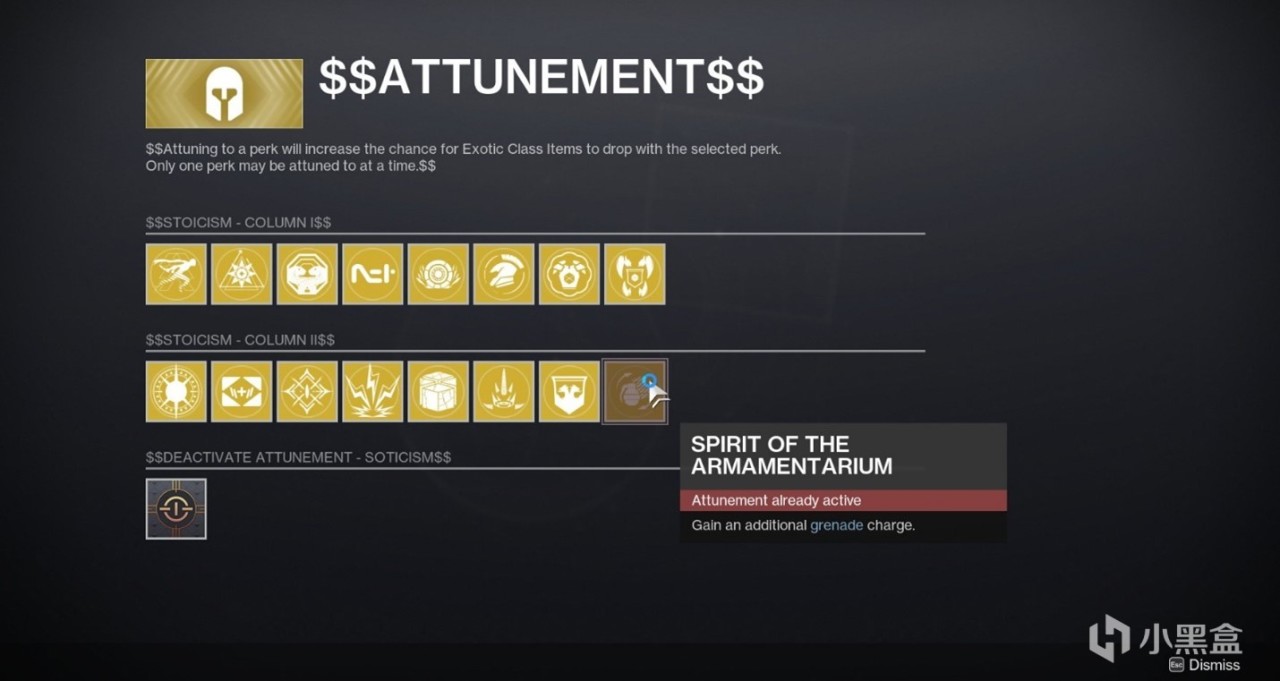 圖片內的文字描述: 對某個Perk同調將會增加該Perk出現在異域職業物品上的概率,每次僅能選中1個Perk進行同調