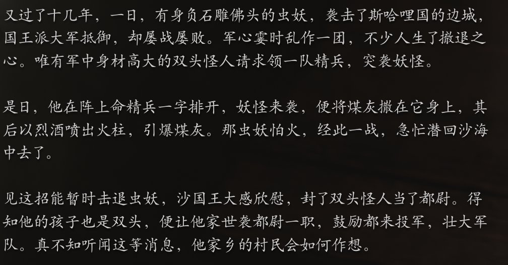 那双头怪人的确有些本事,能够短暂的击退妖怪,但是无法根除,依旧对流沙国造成了巨大的损失,治标不治本。