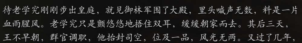 后来,大儿子成了大将军,外出征战,三儿子才华横溢,可惜与自己政见不同,愤然离去。