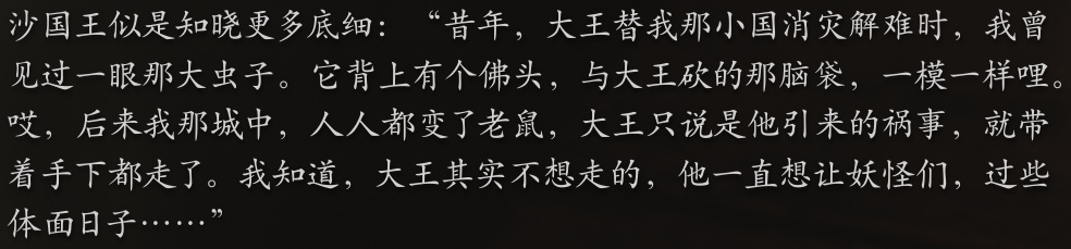 如果在沙大王和沙二郎那一关先杀掉沙大王的话,沙二郎会狂化,并且攻击欲望大大提升,杀掉沙二郎以后会掉一块沙大王的肉,在沙大郎那里需要用沙大王肉引出沙大郎,无头鬼(菩萨)也会出来说你狠心。