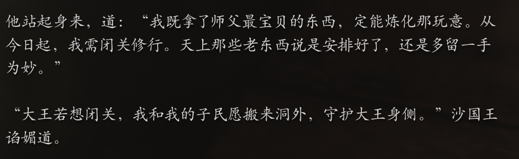 天命人仔细一看,发觉这怪物的面目和沙大王有些相似,心中一惊,还是发动术法,朝那怪物杀去。