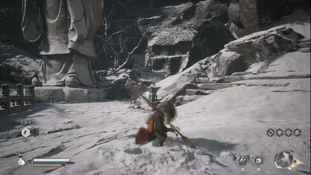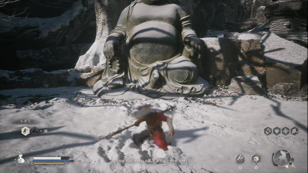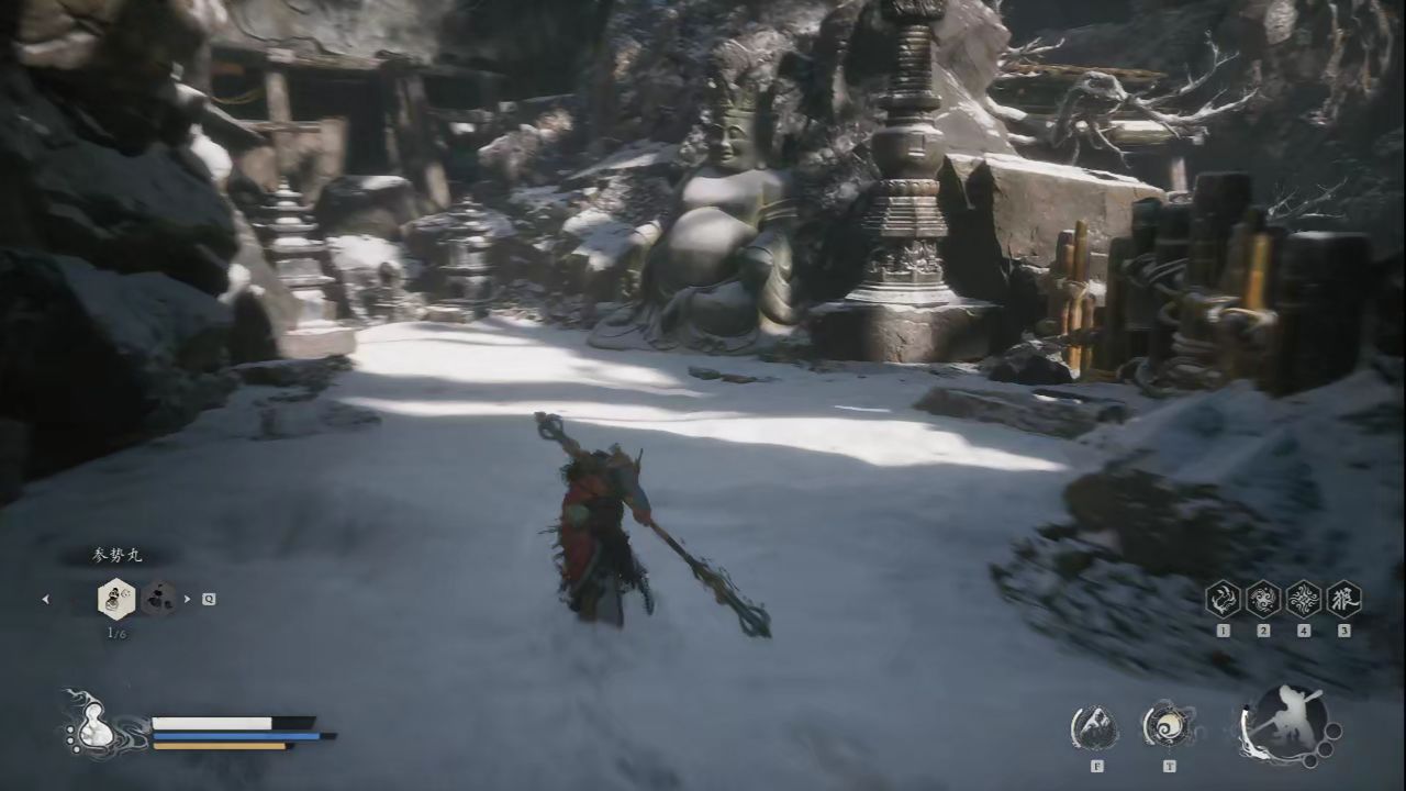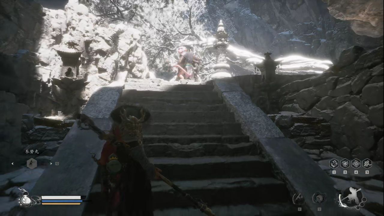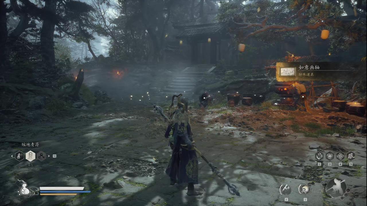 並且在一個臺階上我們能看到一隻穿衣服的老猴,他走後我們在佛像處能拿到要緊事物—想蘊,跳下平臺後遇到BOSS—不白,但是打到殘血他會逃跑。我們也不用原路返回,繼續往前走,穿過刻有佛像的狹長隧道,在一個山洞佛像供桌前拿到珍玩—未來珠,其詞條非常恐怖,能夠免疫致命傷害,務必裝上。