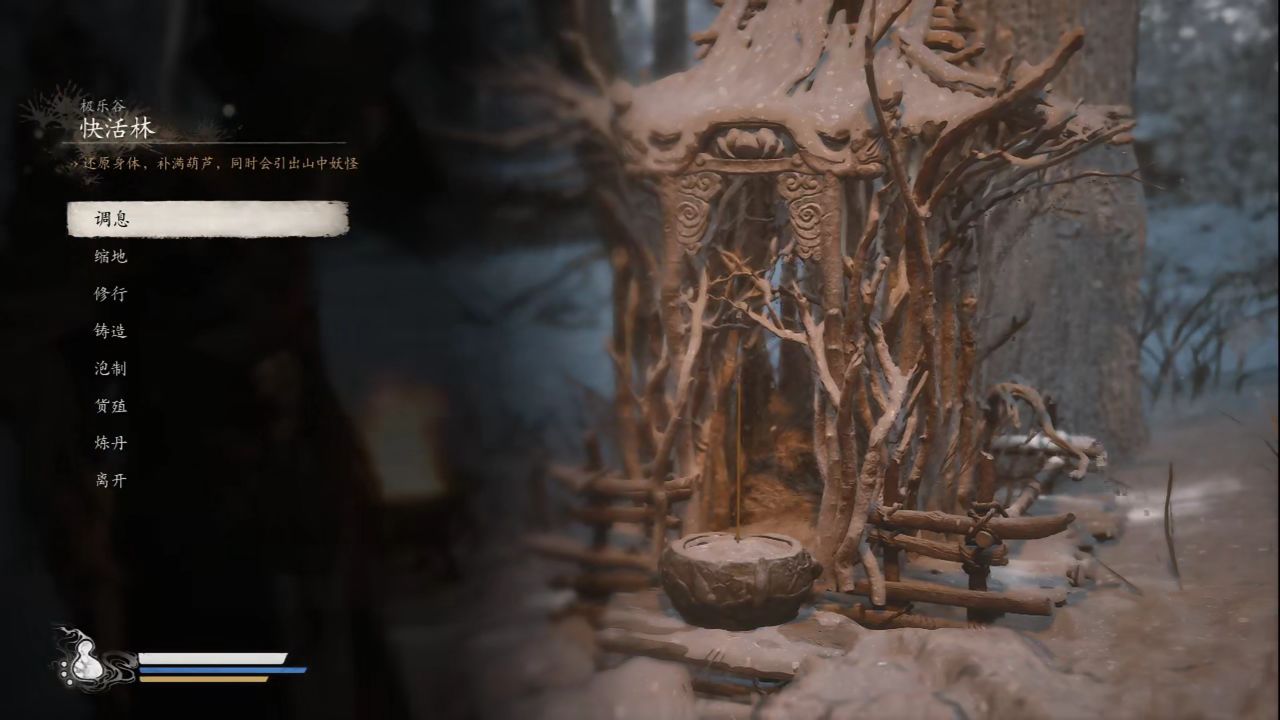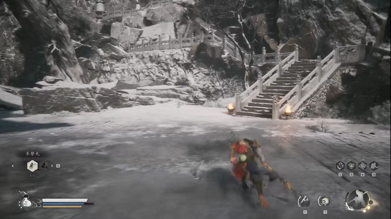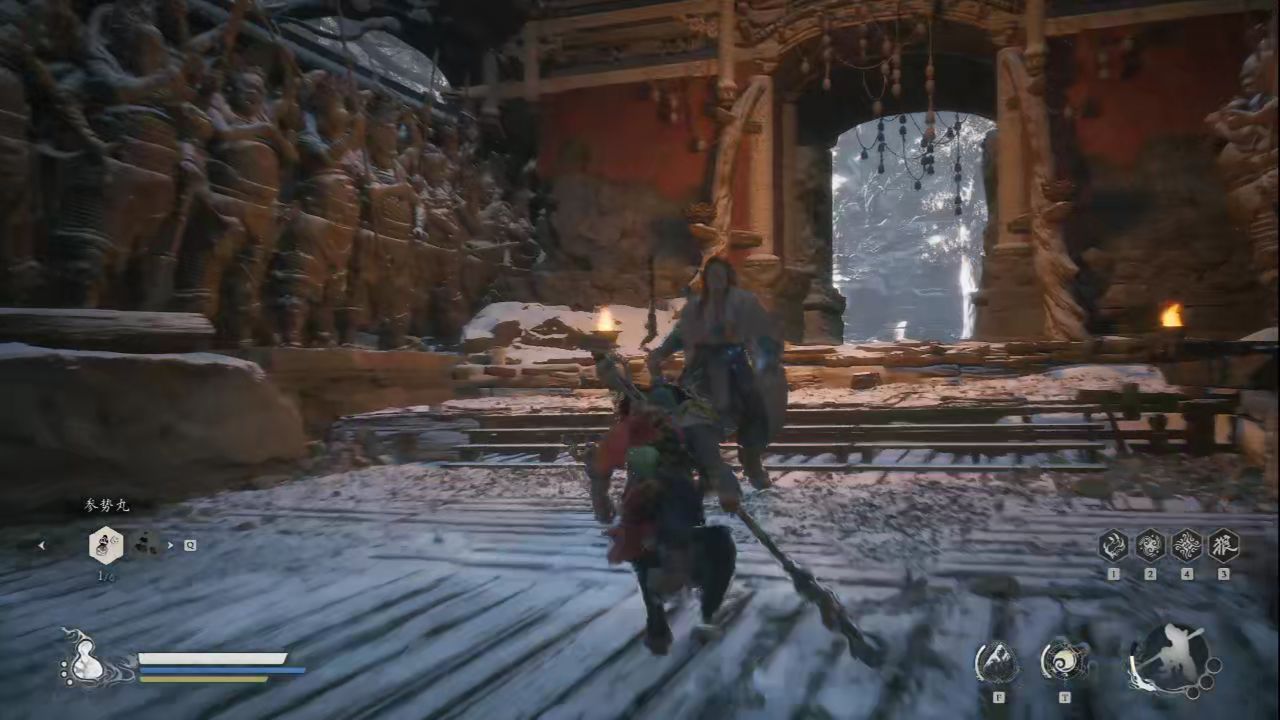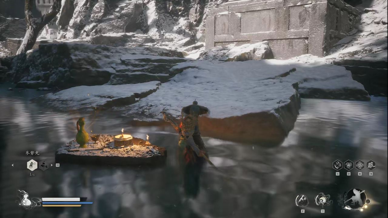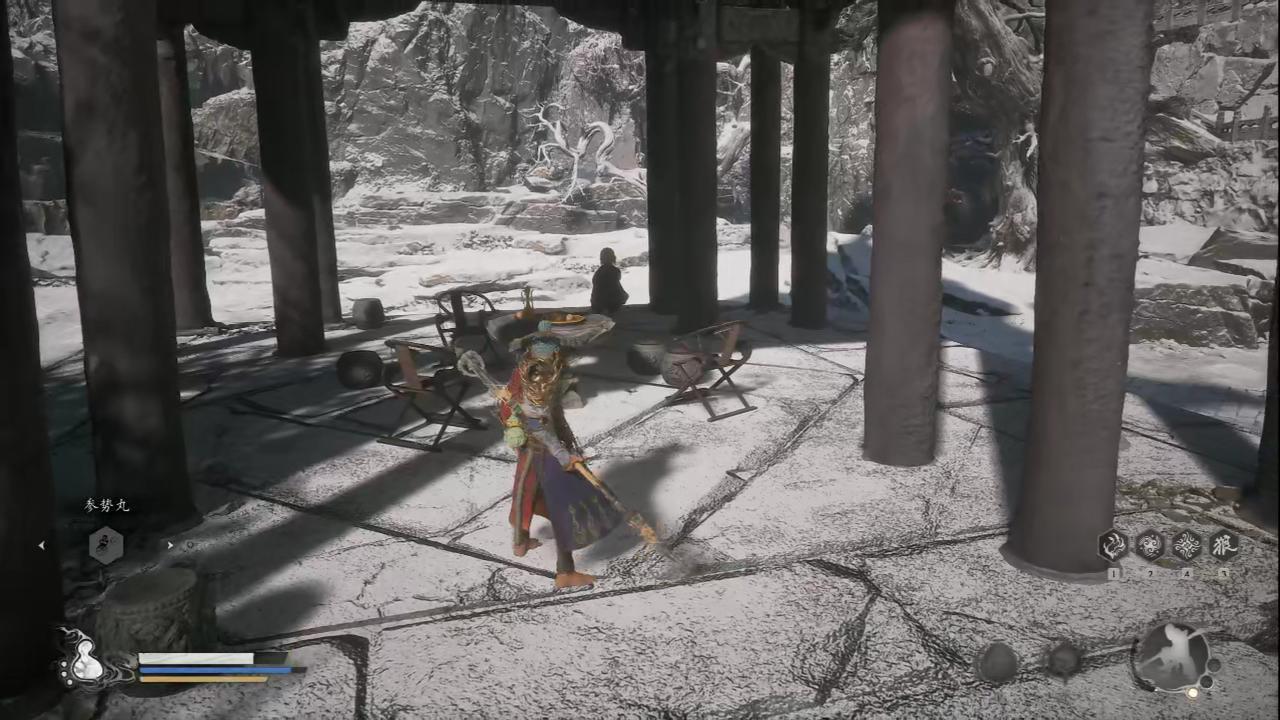 並且在一個臺階上我們能看到一隻穿衣服的老猴,他走後我們在佛像處能拿到要緊事物—想蘊,跳下平臺後遇到BOSS—不白,但是打到殘血他會逃跑。我們也不用原路返回,繼續往前走,穿過刻有佛像的狹長隧道,在一個山洞佛像供桌前拿到珍玩—未來珠,其詞條非常恐怖,能夠免疫致命傷害,務必裝上。