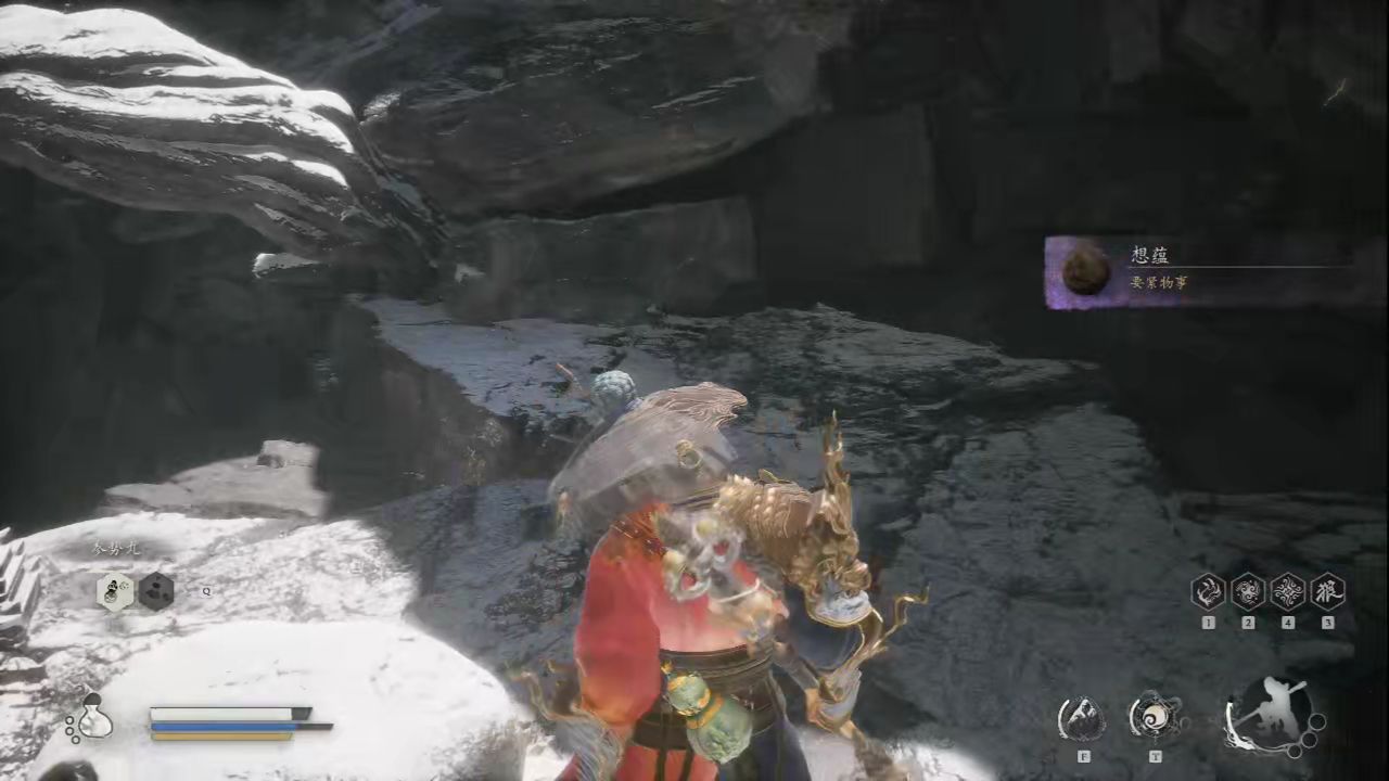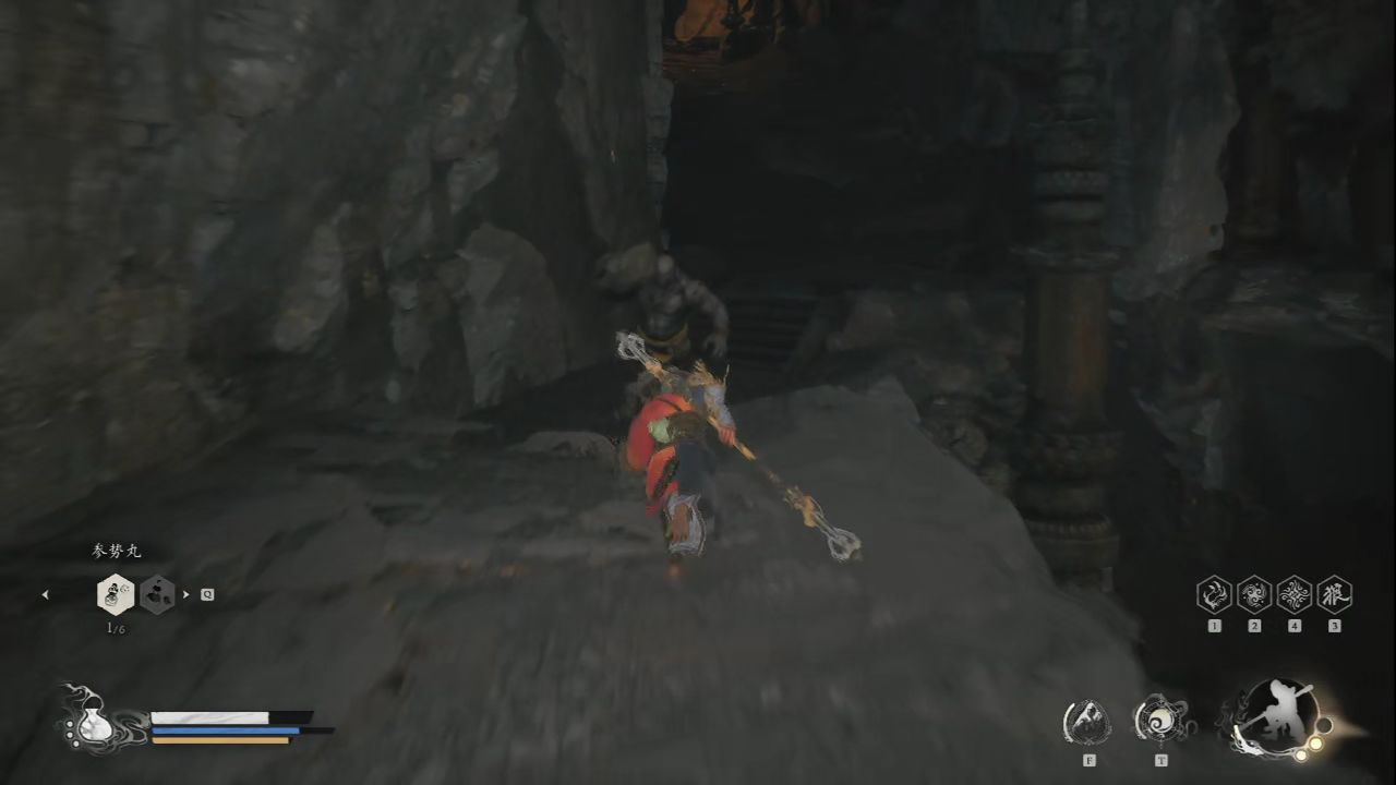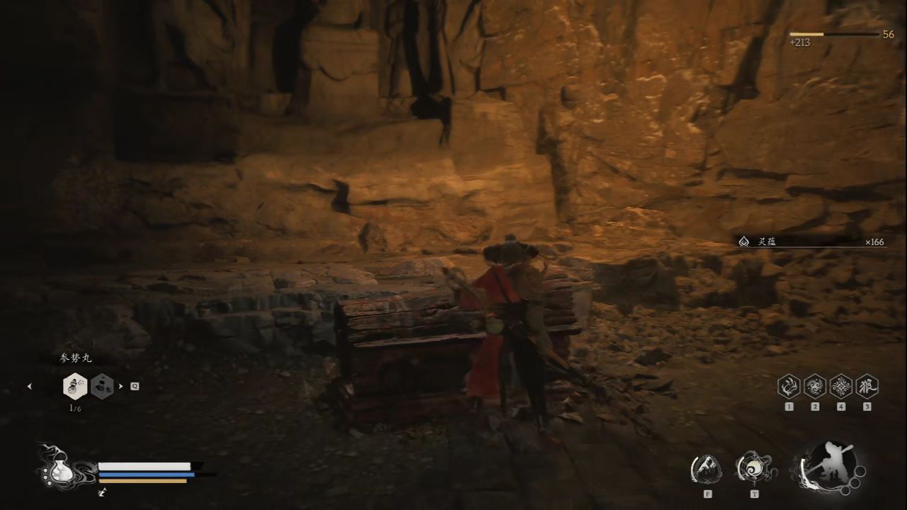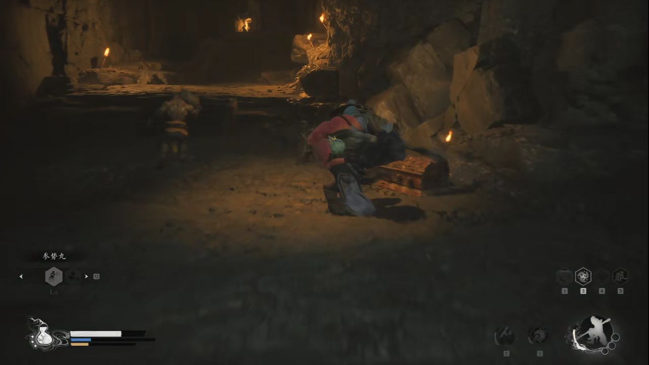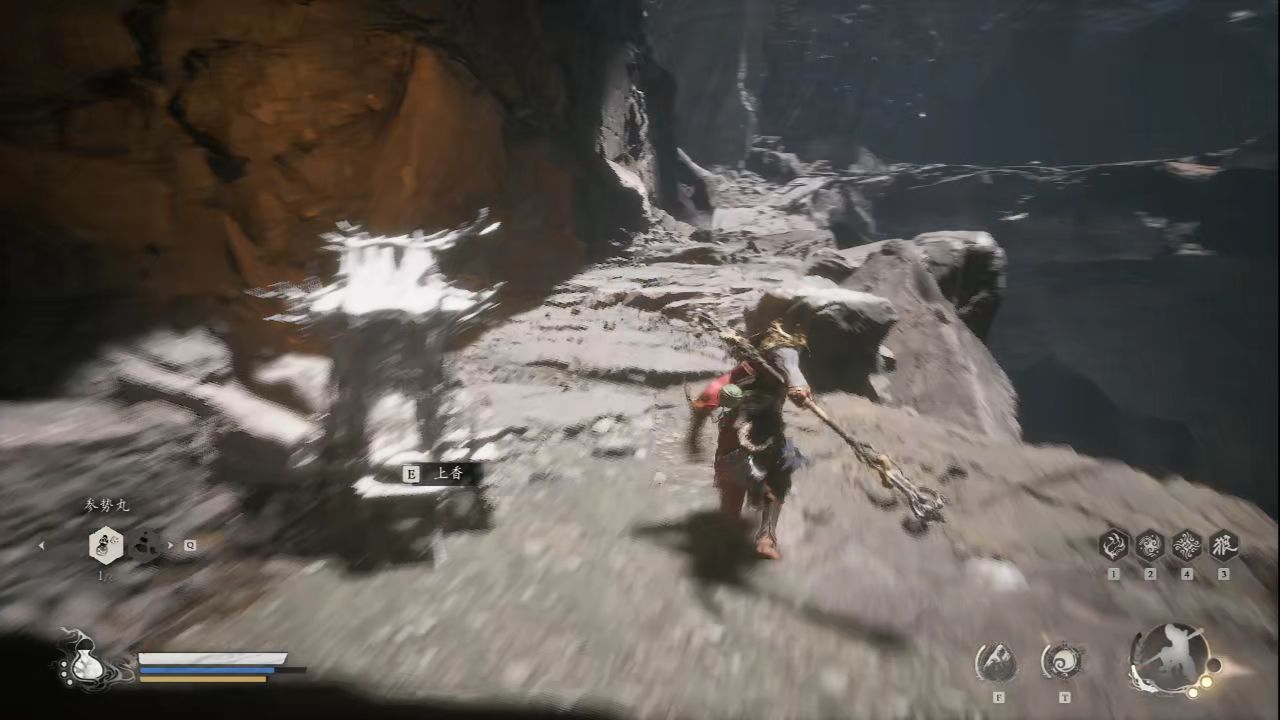 我們直接從橋上跳下去(我不會告訴你我是腳滑下去的),往左側山洞走,一路過關斬將到一個洞穴裏面,可以看到一個寶箱,裏面是一個新的葫蘆—燃葫蘆