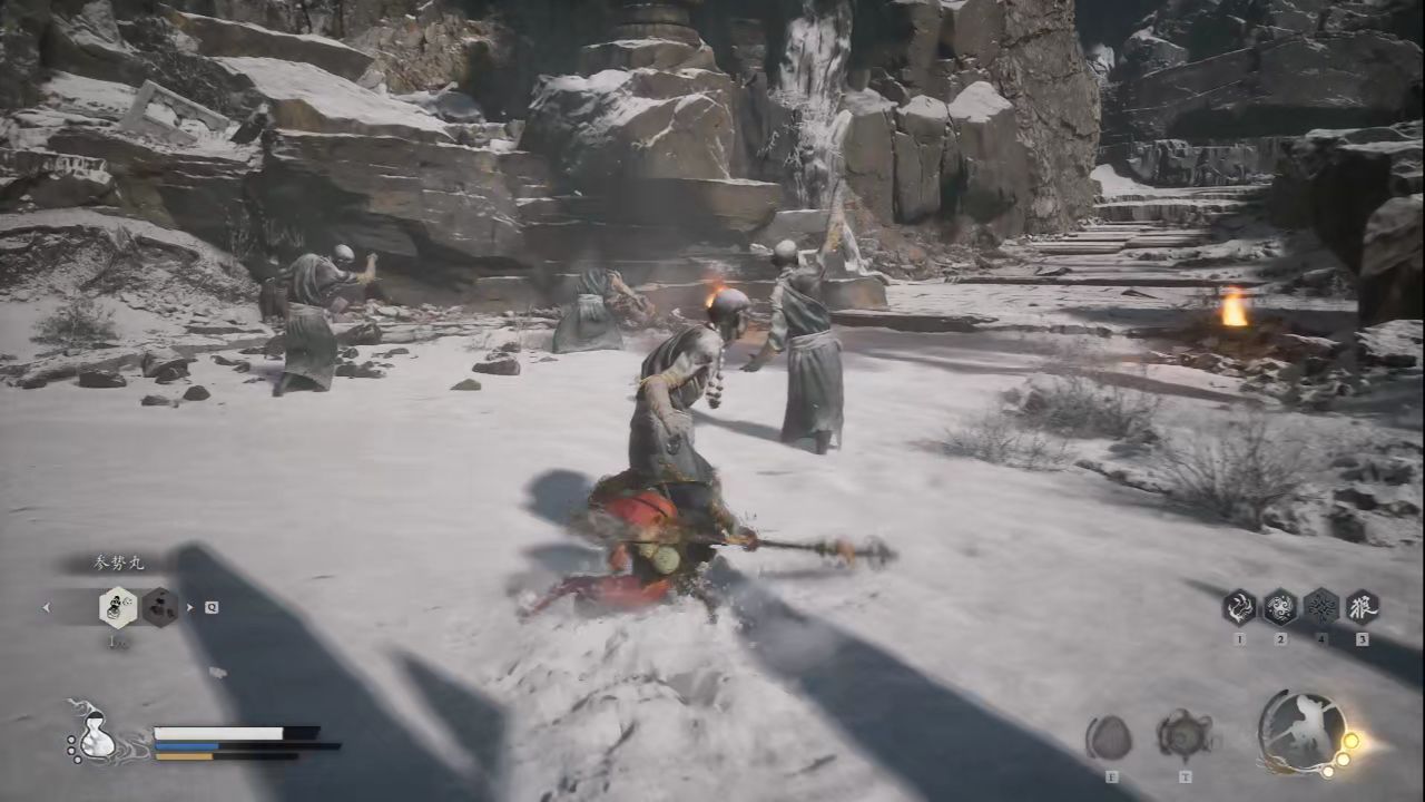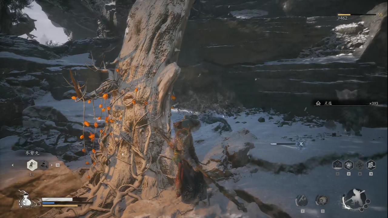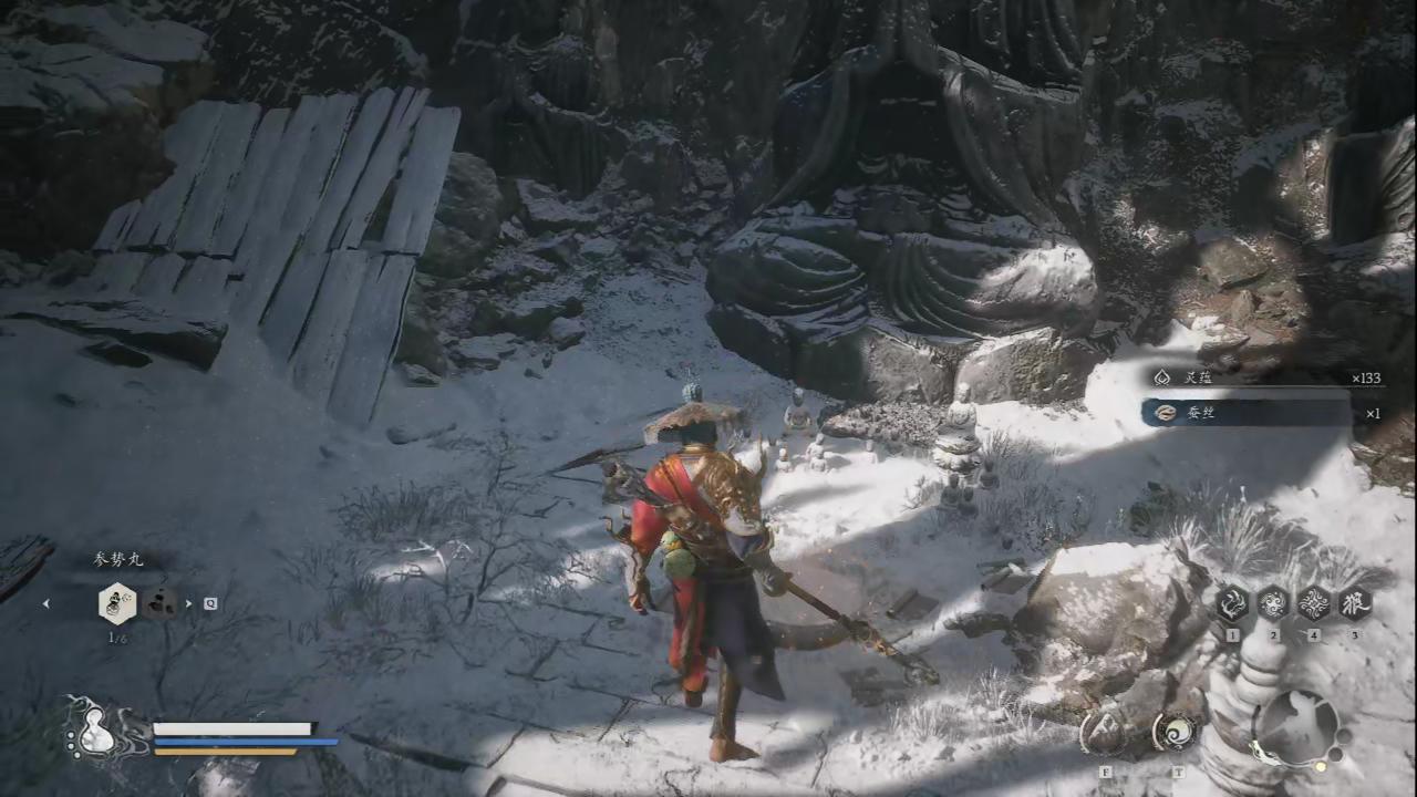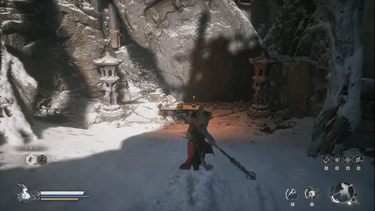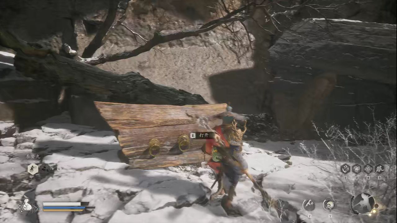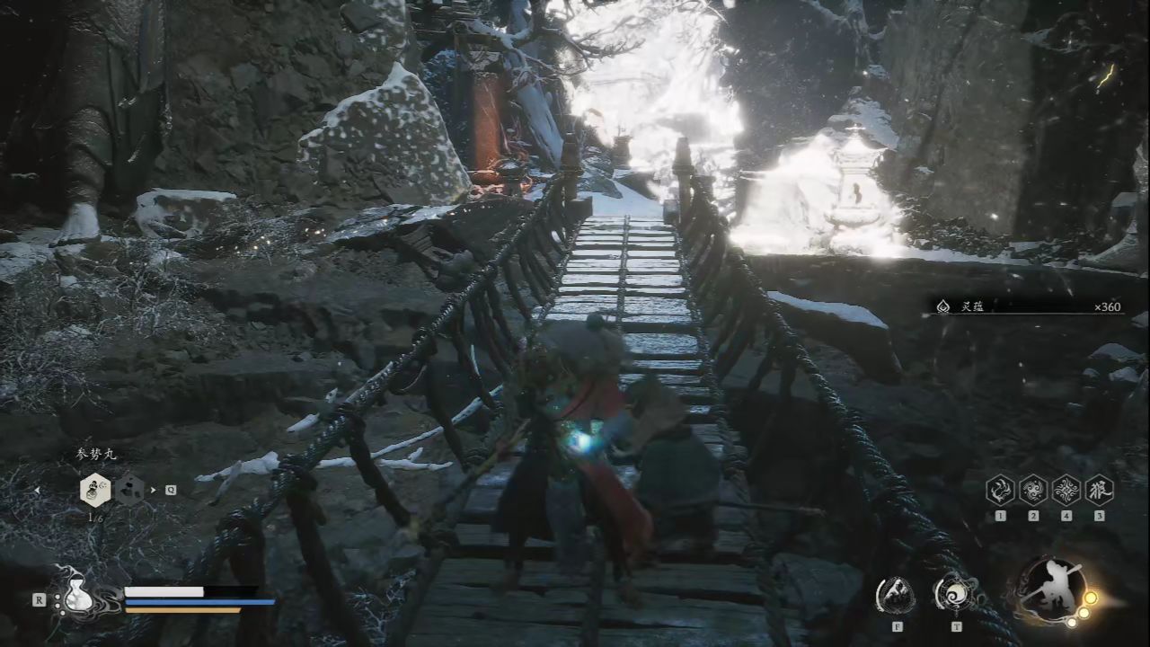 我們直接從橋上跳下去(我不會告訴你我是腳滑下去的),往左側山洞走,一路過關斬將到一個洞穴裏面,可以看到一個寶箱,裏面是一個新的葫蘆—燃葫蘆