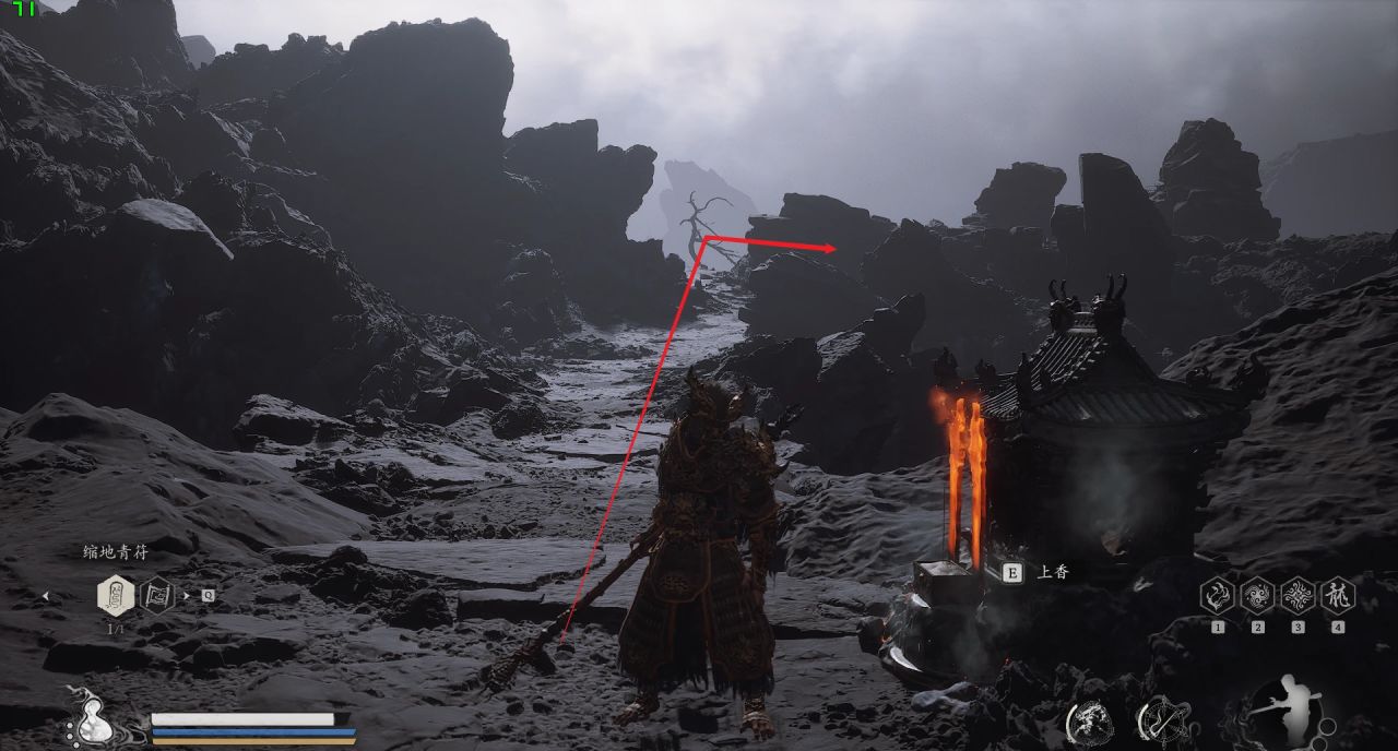我们来到「火焰山—火光地—火燎三关」,就在土地庙右侧