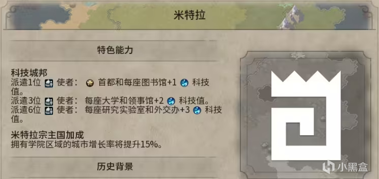 米特拉宗主国加成:拥有学院区域的城市增长率将提升15%。