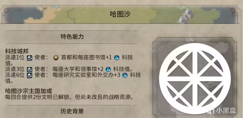 哈图沙宗主国加成:每回合提供2份文明已解锁、但尚未改良的战略资源。
