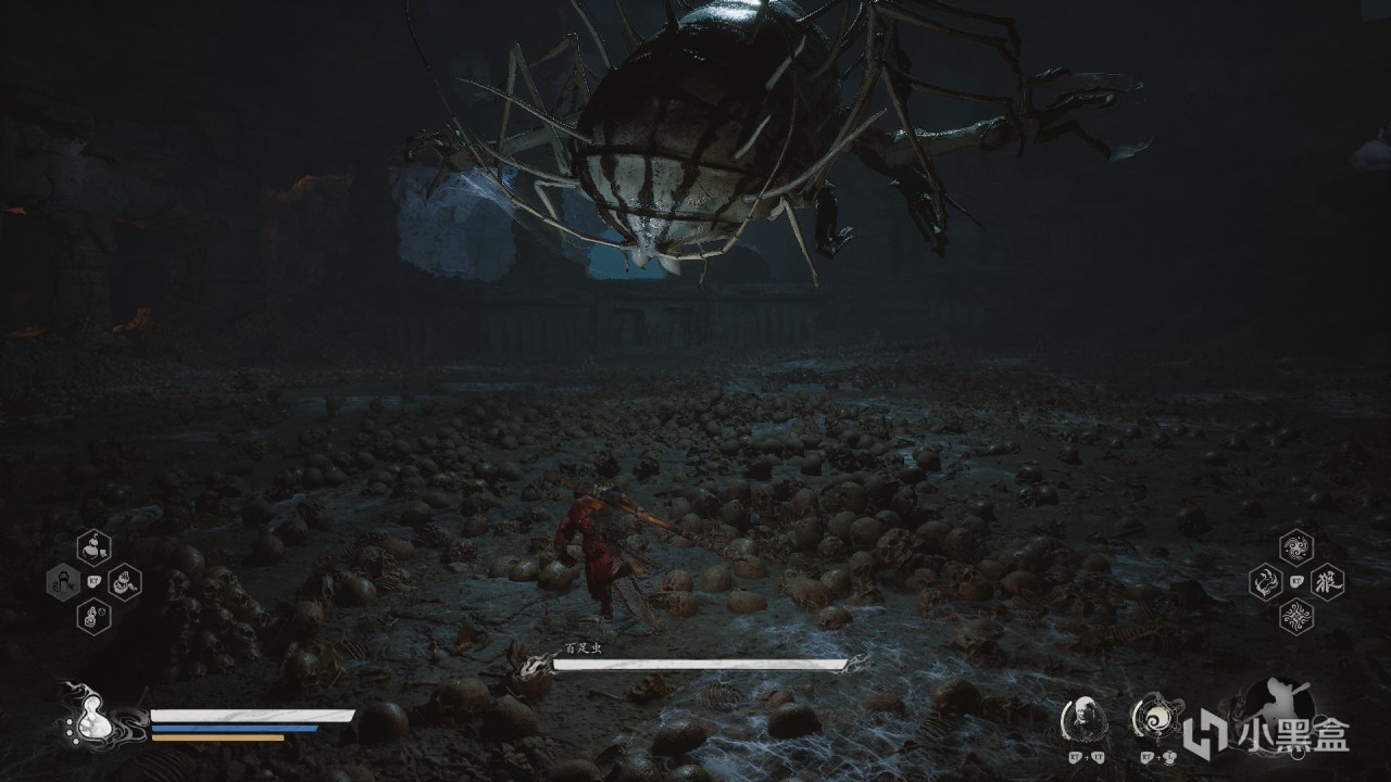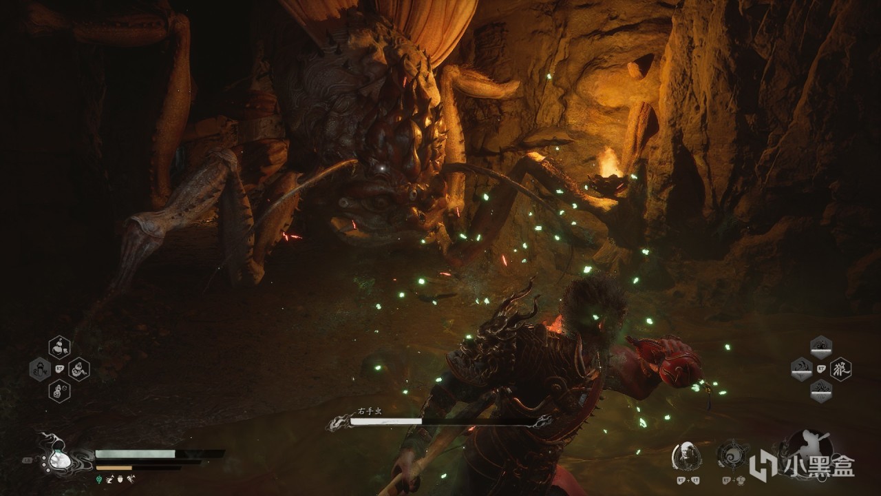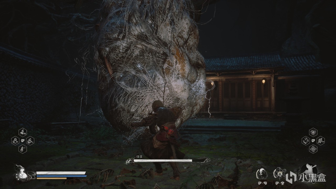 體驗及解析:紫珠兒就是預告出現的那個老婆婆,衆多蜘蛛精的母親,位置在萬慈窟土地廟右邊平臺。紫珠兒打起來感覺有點靈活,她總是可以躲開我的重棍,但是可以打到硬直,兩棍3蓄可以打到硬直狀態。期間要注意她低頭對你織網的時候,被控住打一下就半血。然後殘血開大招的時候會把我們弄到蛛網上,這個時候不要慌,只是臨死反撲,正常打他就行。