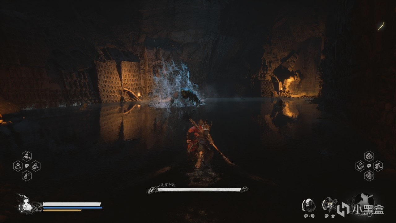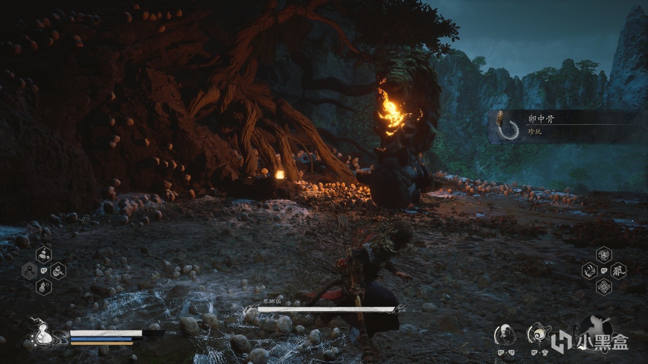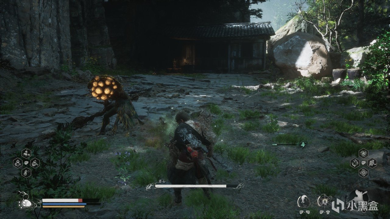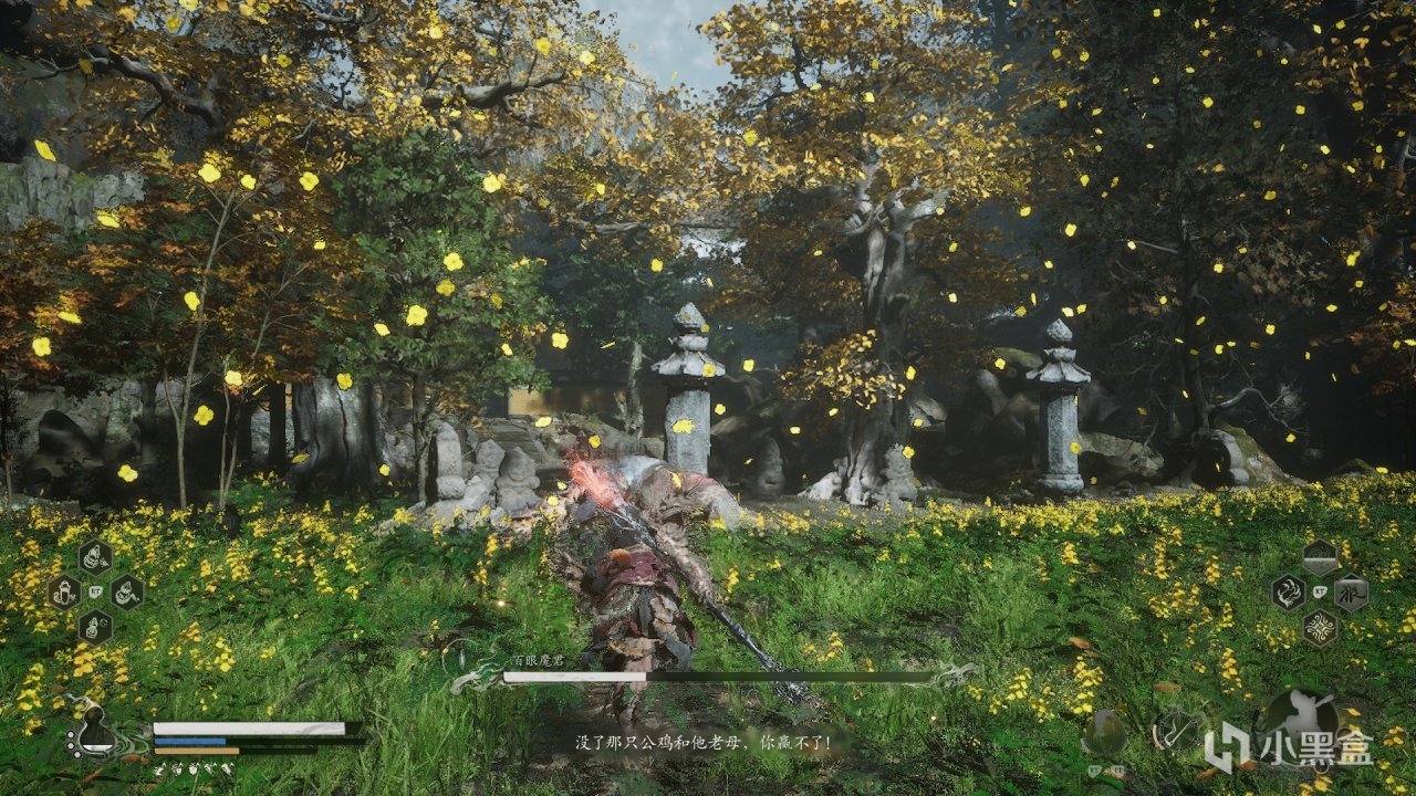 體驗及解析:波了個波是浪了個浪和浪了個波的兄弟哈哈。位置比較難找,我告訴大家,在土地廟底部附近。然後這裏面對土地廟,用跳+重棍跳上前面的懸崖,然後向右手邊拐就可以看到他了。作者死了3次前兩次是因爲打了小黃龍忘了換法術了,實際上不難,但是這次它的舌頭變得更加奇怪靈活,然後打法上建議重棍硬直+猴毛羣毆。