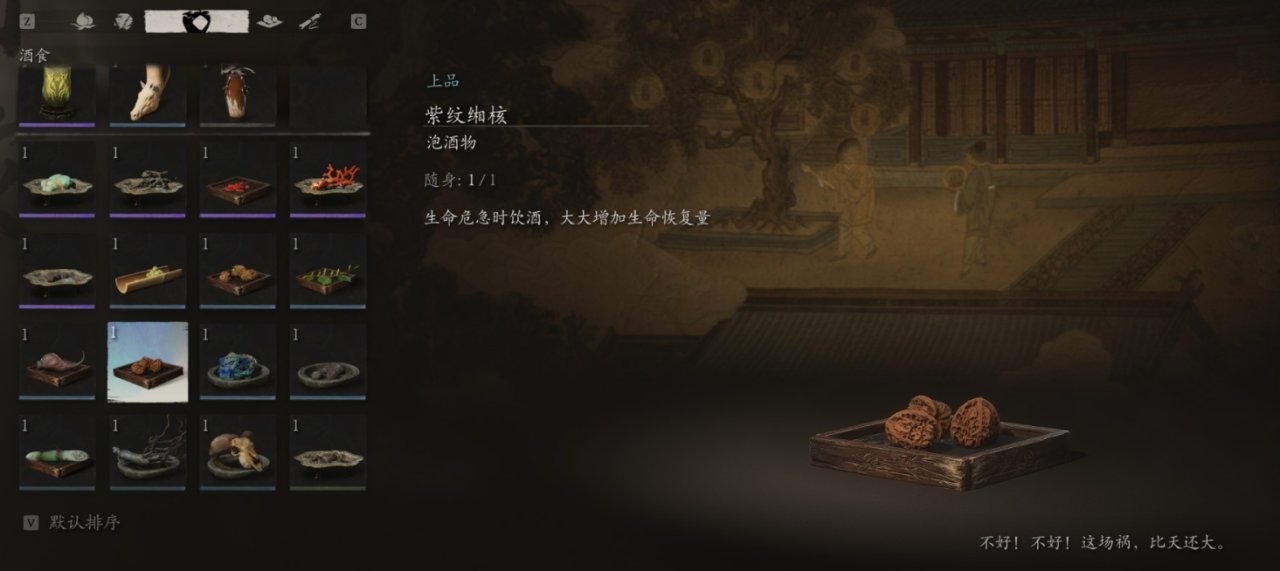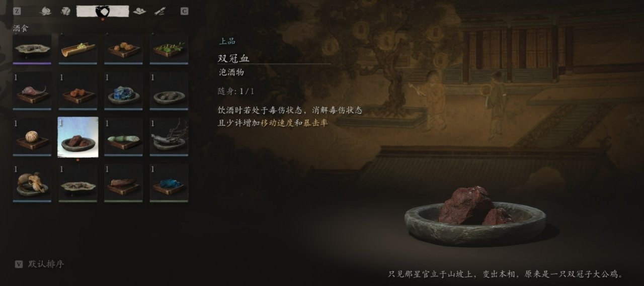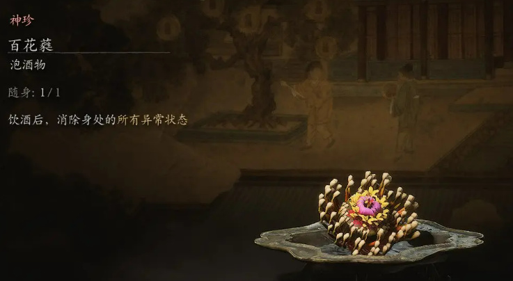 获取方法:在第四回盘丝洞找到并揭开三张紫色符纸(花间桥、绝想崖、堕龙壁),前往黄花观,从【金光苑】土地庙往上山一侧走,不要进入天王殿,沿着唯一的路上山,到岔路口后左转继续沿路下坡,走到底击败BOSS黑手道人,即可进入【隐·紫云山】。在【隐·紫云山】击败BOSS晦月魔君即可获得此泡酒物。