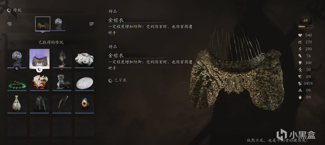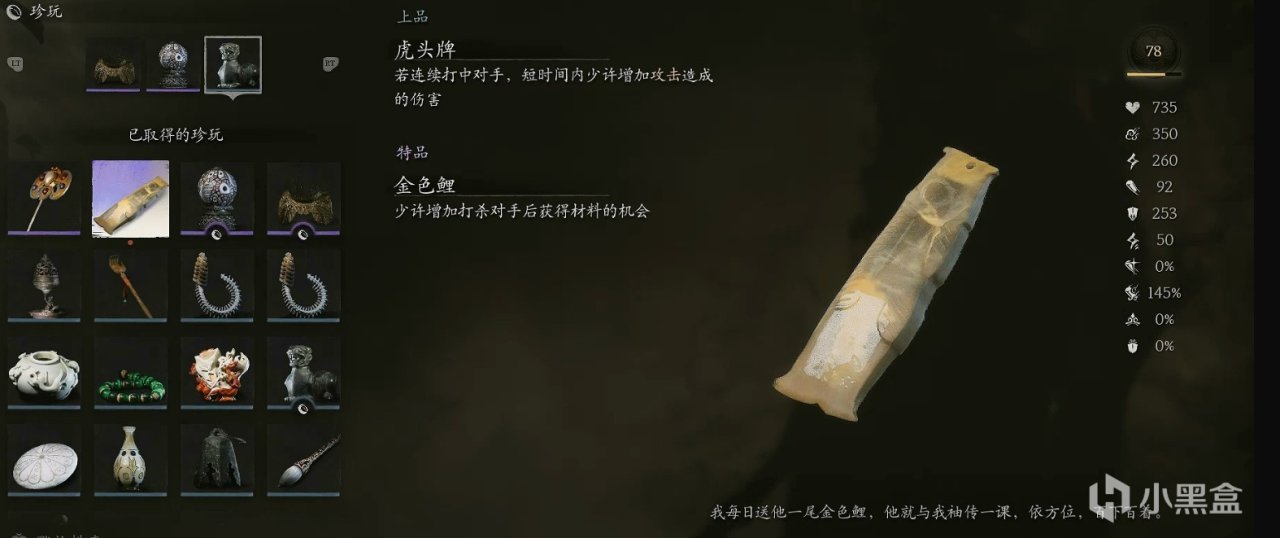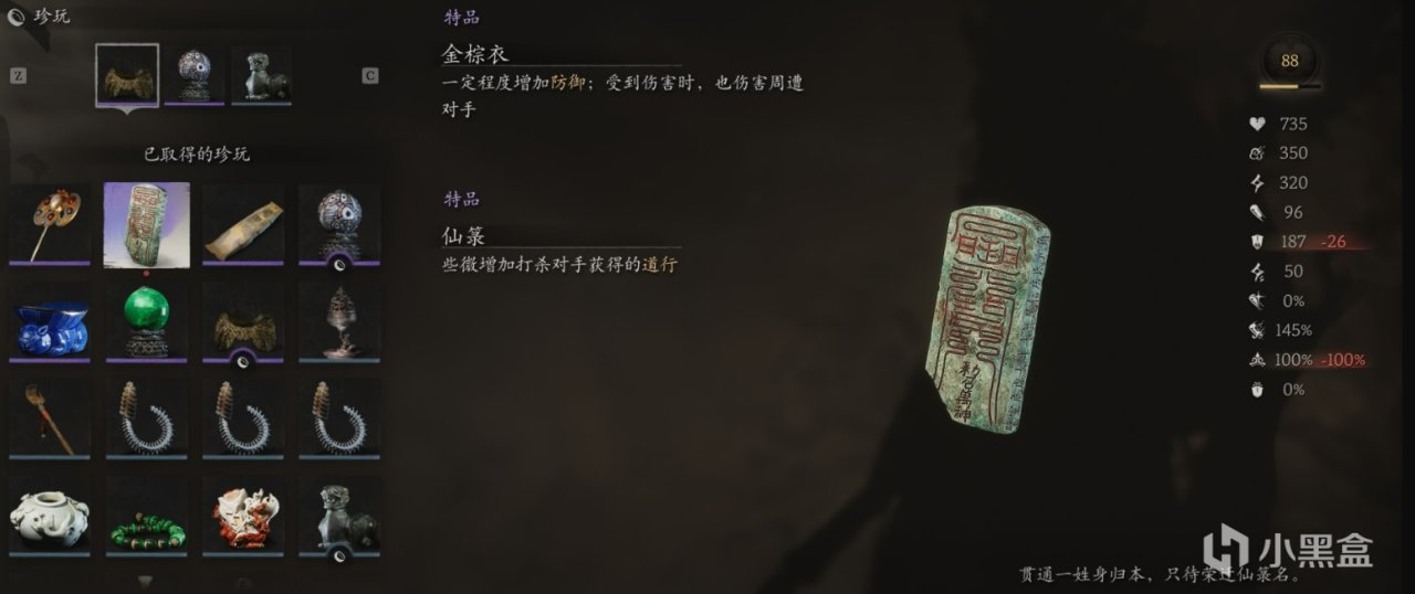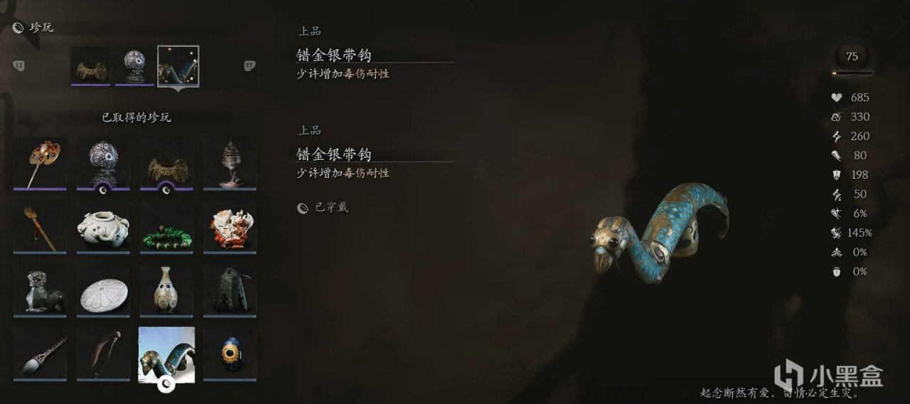 獲取方法:在BOSS沙大郎所在位置拿到飛龍鱗片後,前往第二回【挾魂崖-枕石坪】,面對土地廟往右走樓梯到達上層,往前方上面可以看到沙瀑,靠近沙瀑並與沙瀑互動,開啓大門觸發與小驪龍的BOSS戰,擊敗小驪龍後開啓樓梯上方的寶箱即可獲得此珍玩。