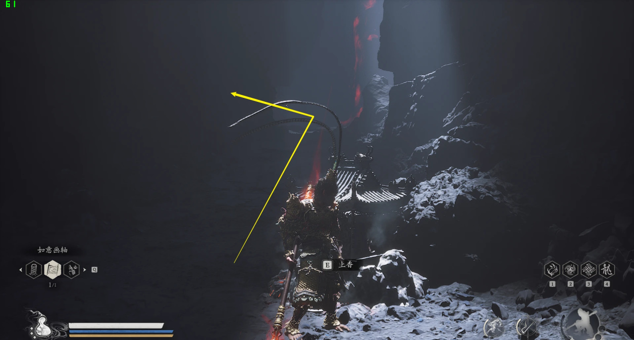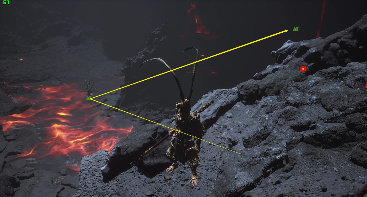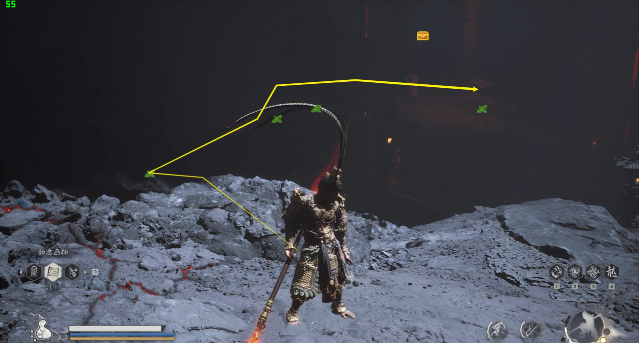 然後走左側懸崖跳到岩漿裏面「裏面一共四個,還有一個boss燧統領」