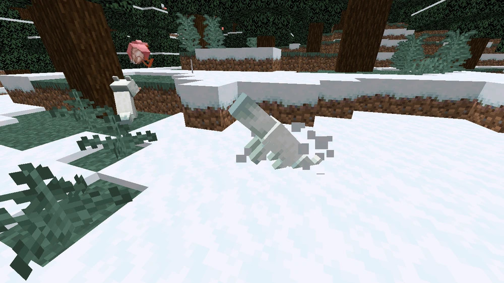 雪地生物羣系生成的狐狸會變爲白狐,白狐在捕獵時有機率會將頭卡在雪地裏。白狐的現實原型北極狐也會這樣。