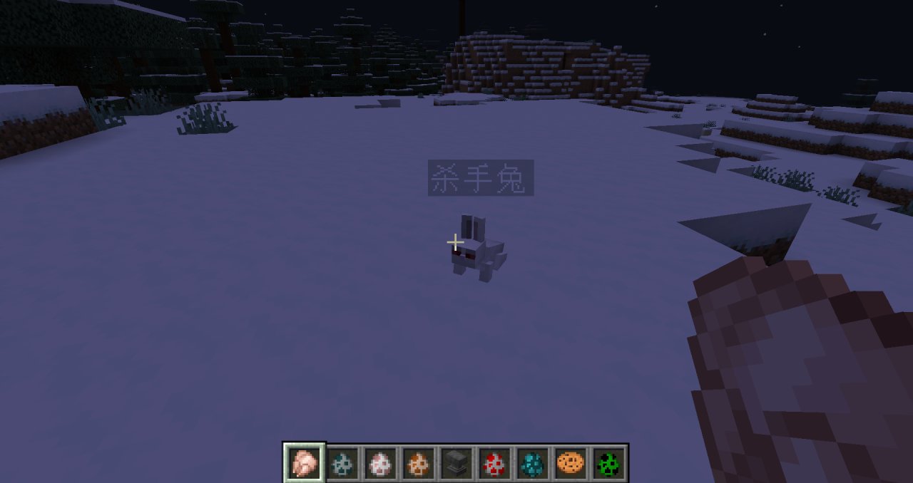 殺手兔目前只能用指令“/summon minecraft:rabbit ~~~ {RabbitType:99}”生成,其設計靈感源於《巨蟒與聖盃》中卡諾賓格的兔子。