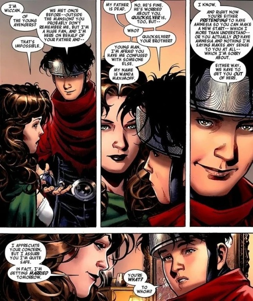 而這一情節在漫畫中正好有對應的劇情,在M日旺達說出了:“不再有變種人”的咒語後,她就回到了溫達戈爾山脈隱居,而這其實是阿加莎爲旺達安排的居所,最終找到旺達的正是她的兒子比利。