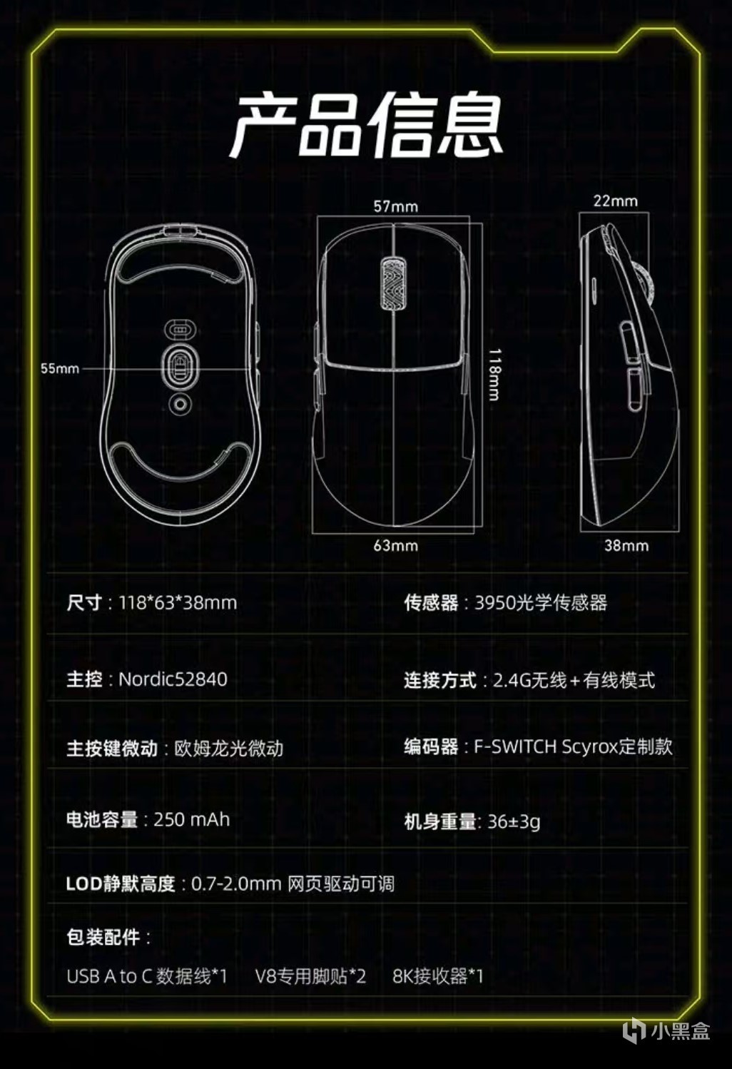 总结:从重鼠标换到轻量化的鼠标后,在定位上需要慢慢适应,但是舒适度大大的提升,长时间高强度的使用下,并不会出现手腕酸痛等等现象。首发299这个价格下,原相3950,欧姆龙光微动以及8k接收器和诺迪克52840的主控,在游戏方面的表现可谓淋漓尽致。驱动方面支持网页驱动,可在网页输入www.scyrox.cn可进入塞洛斯官网下载,在鼠标底部配备的dpi调节按钮,能够更好的满足使用者的不同dpi需求。