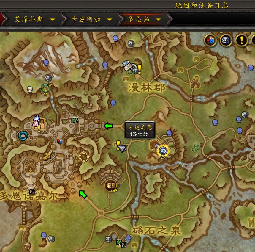 另外,到達新地圖後建議先只做主線戰役(特別是第一個號),本人親測,如果只接主線任務做(帶盾牌的感嘆號),做到千絲之城的主線後返回多恩諾嘉爾剛好可升到77級,此時任務提供的裝備一般都在525左右,已基本可替換掉上個版本的高等裝備,同時還會得到一套很普通的新兵幻化套裝,收藏黨+1。