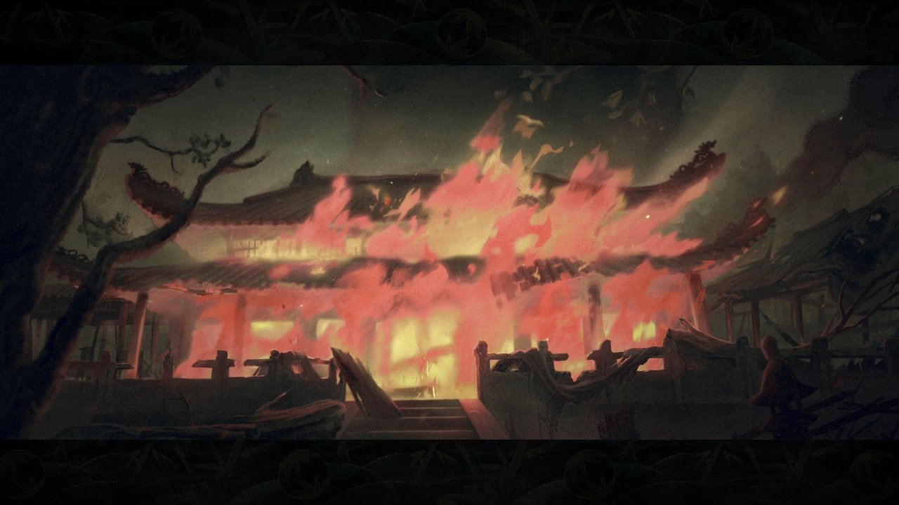 《楞嚴經》中提到:“以業火乾枯”,意思是惡業害身,就如同火焰焚燒罪人一般,這種火焰正是由業障所召感的。觀音禪院的和尚們因一時貪念,放出大火,最終殃及自身,我想這應該就是業火吧。他們放不下心中的業,那麼業火也不會離他們而去,哪怕十年如一日地念經打坐,也只是裝模作樣,破不了自己的業障,成不了真正的佛。