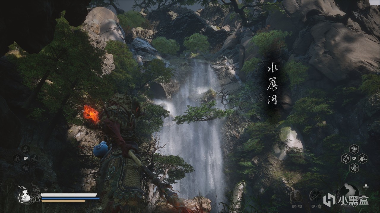 PS:很多小夥伴在進入這個水簾洞的時候老是會掉下去。是因爲你沒有走到那個中間石頭的中間部位。它是一個有一塊突出來指向那個水簾洞的部位的。站在那裏跳的話就可以一次跳進水簾洞