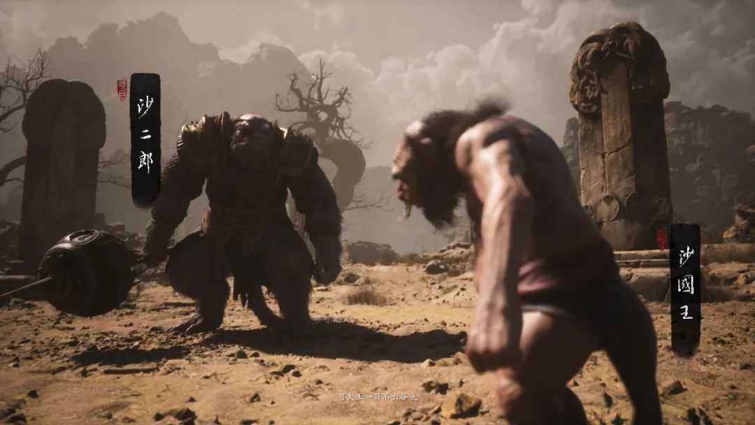 第二章的boss设计水平依然在线。沙国王和沙二郎的双boss战很有意思:首先,虽说是双boss,但两个boss的定位却不对等——沙国王伤害较低,侧重游走和骚扰,沙二郎则比较接近一个正常boss的水平。我认为这能在一定程度上反映本作的双boss战设计倾向,即更强调两个boss之间的组合性,同时只活性化一个boss的AI,不让玩家频繁陷入腹背受敌的窘境。我个人认为这样的设计比单纯把两个boss塞一起要高明的多。同时沙国王和沙二郎的击杀顺序会决定本战的难度,奖励乃至任务走向,实在是很棒的设计。不过这样的设计后续章节却并没有再出现,实属遗憾。虎先锋和黄风大圣设计的也不错,略有难度,招式简单直接,交互性佳。就是黄风大圣这个零帧起手的投技有些抽象了,感觉和轻攻击的低机动性有点相悖。