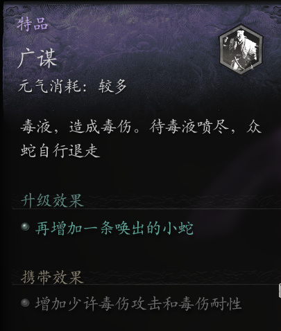 广谋(满级增加毒伤耐性10,毒伤攻击?)