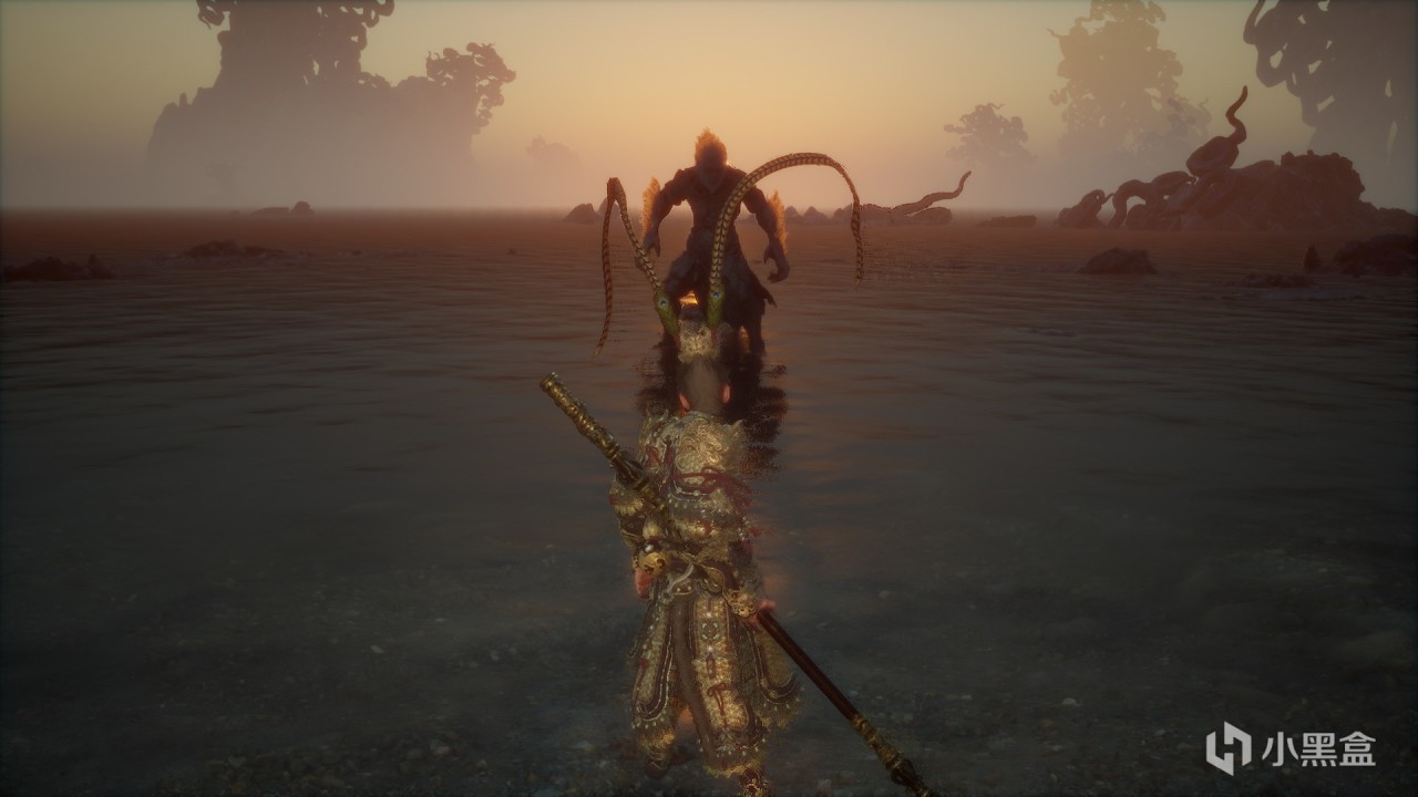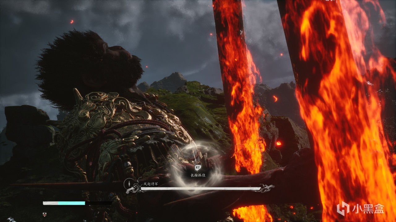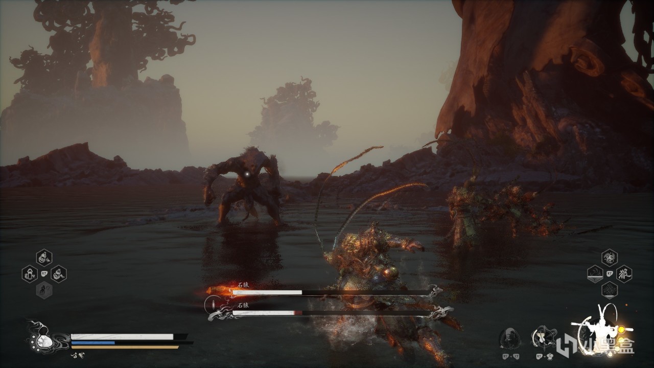 體驗及解析:無論是石猴還是大聖殘軀都是兩管血條。石猴一階段很好打,二階段附加屬性傷害(冰+火),殘血會分身,這個時候不要慌,很好打的。打完石猴以後會觸發動畫,然後接着滿血滿狀態打大聖殘軀,但是如果中途死了,不用再打石猴。大聖殘軀難打,給大家一個方法,參考一下。首先大聖殘軀一階段我們可以蓄力到4棍勢,下水前先蓄力到四重棍過去打一棒子,遠離他,等他扔完棍子繼續遠離蓄力到4棍勢,再過去給一棍子,循環往復,四棍子可以解決。二階段會剝奪我們的能力,不能蓄力到四棍勢,這個時候我只能給大家一個建議,當你輕棍打他,大聖會聚形化氣,所以我們不用這樣打,我們蓄力到3棍勢,靠近大聖,他出招以後我們鬆手,換血。(博主說他是指令怪,你出招他就會化解你)